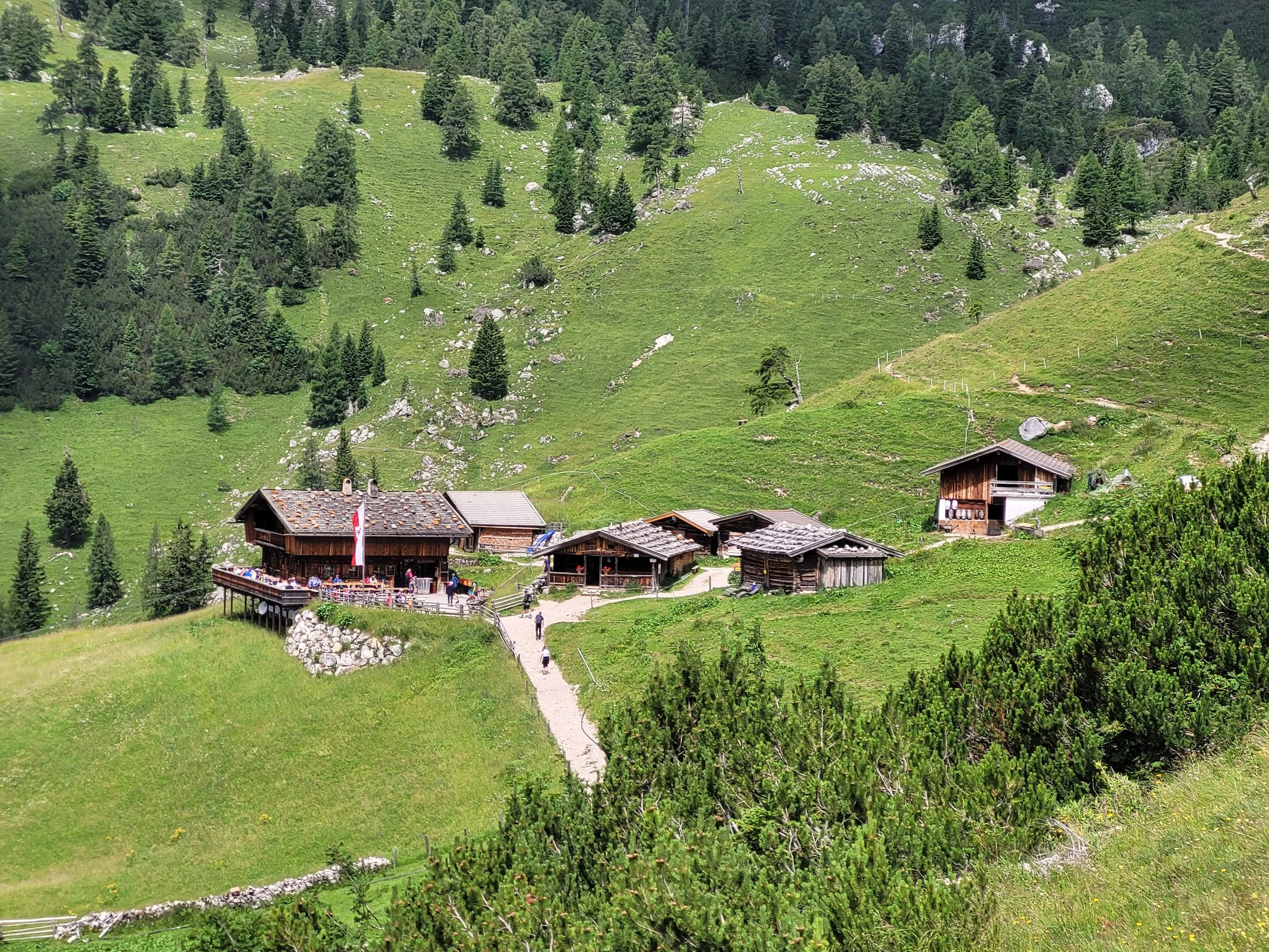 Kurz darauf sieht man auch schon das Ziel des Weges: die Dalfazalm.