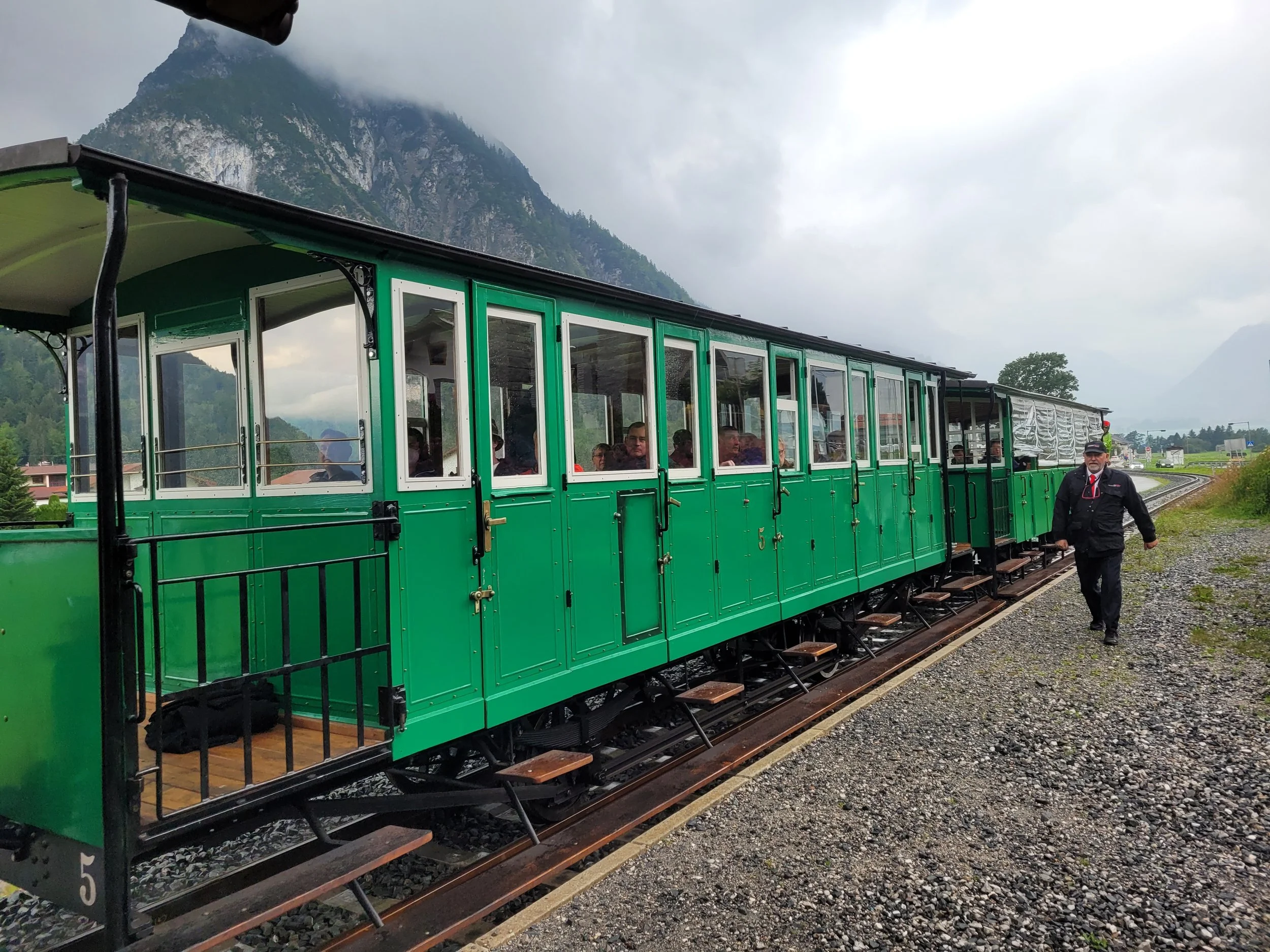 In Jenbach kam es zu einem kurzen Aufenthalt, bevor wir auf demselben Weg wieder zurück fuhren. Auf dem Rückweg konnten wir sogar einen Platz in der ersten Reihe ergattern.
