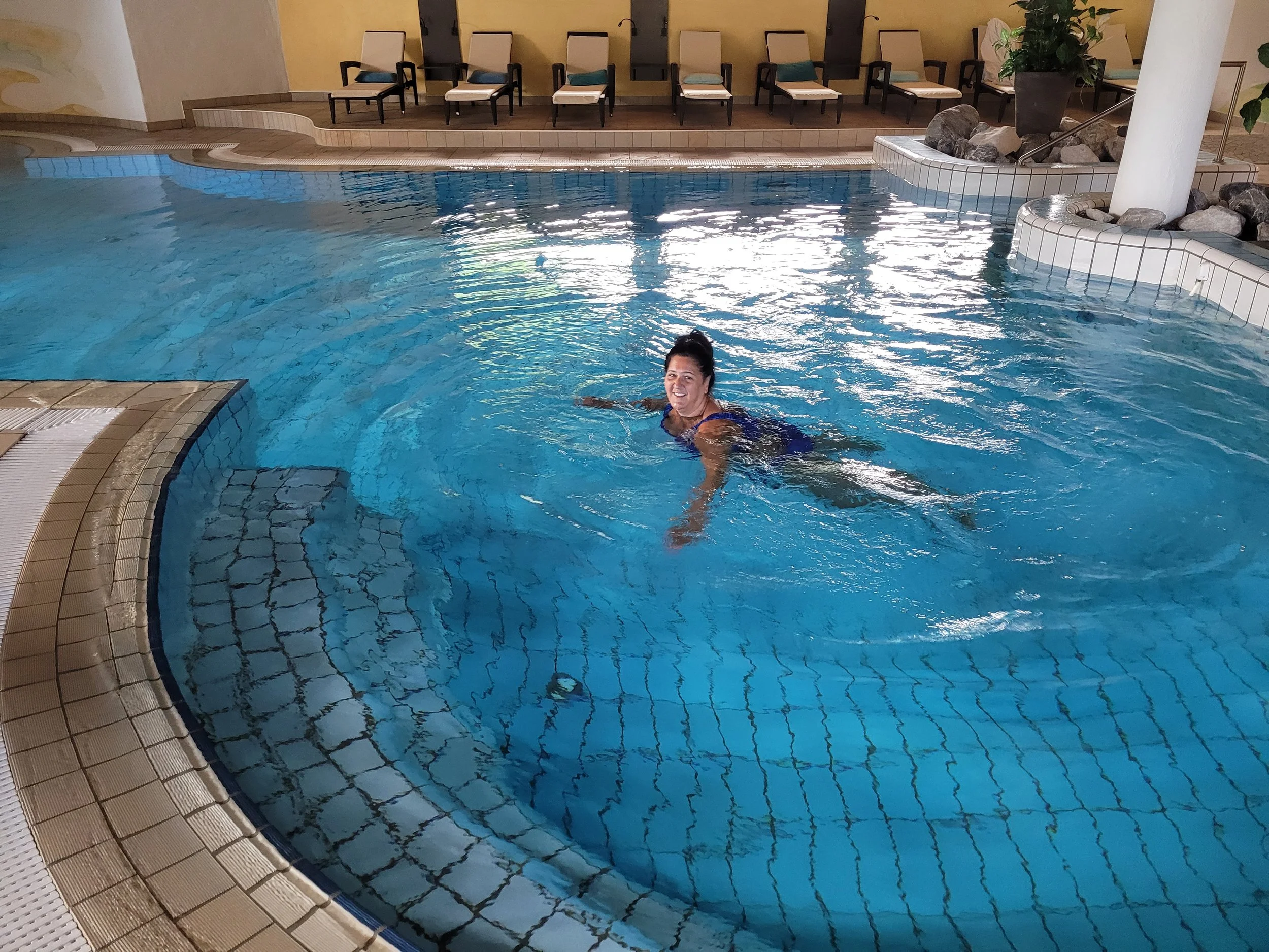 Wir besuchten daher erst einmal den Wellnessbereich. Wie gesagt, ich liebe es im Regen zu schwimmen (ich liebe es eigentlich immer, überall und bei jedem Wetter zu schwimmen).