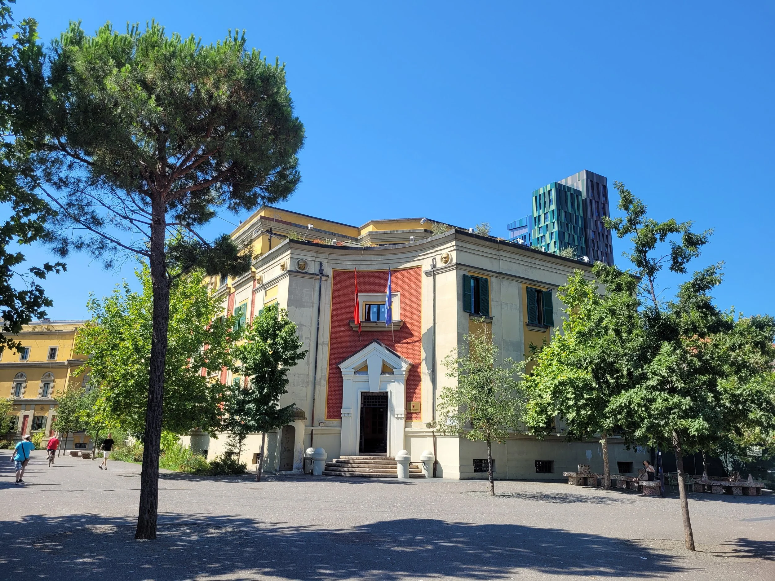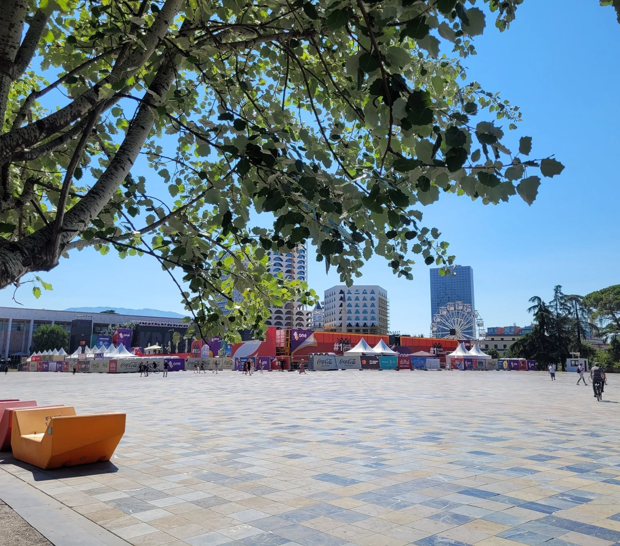 Der erste Stopp unserer Besichtigungstour führte uns zum Skanderbeg Platz, dem pulsierenden Hauptplatz Tiranas.