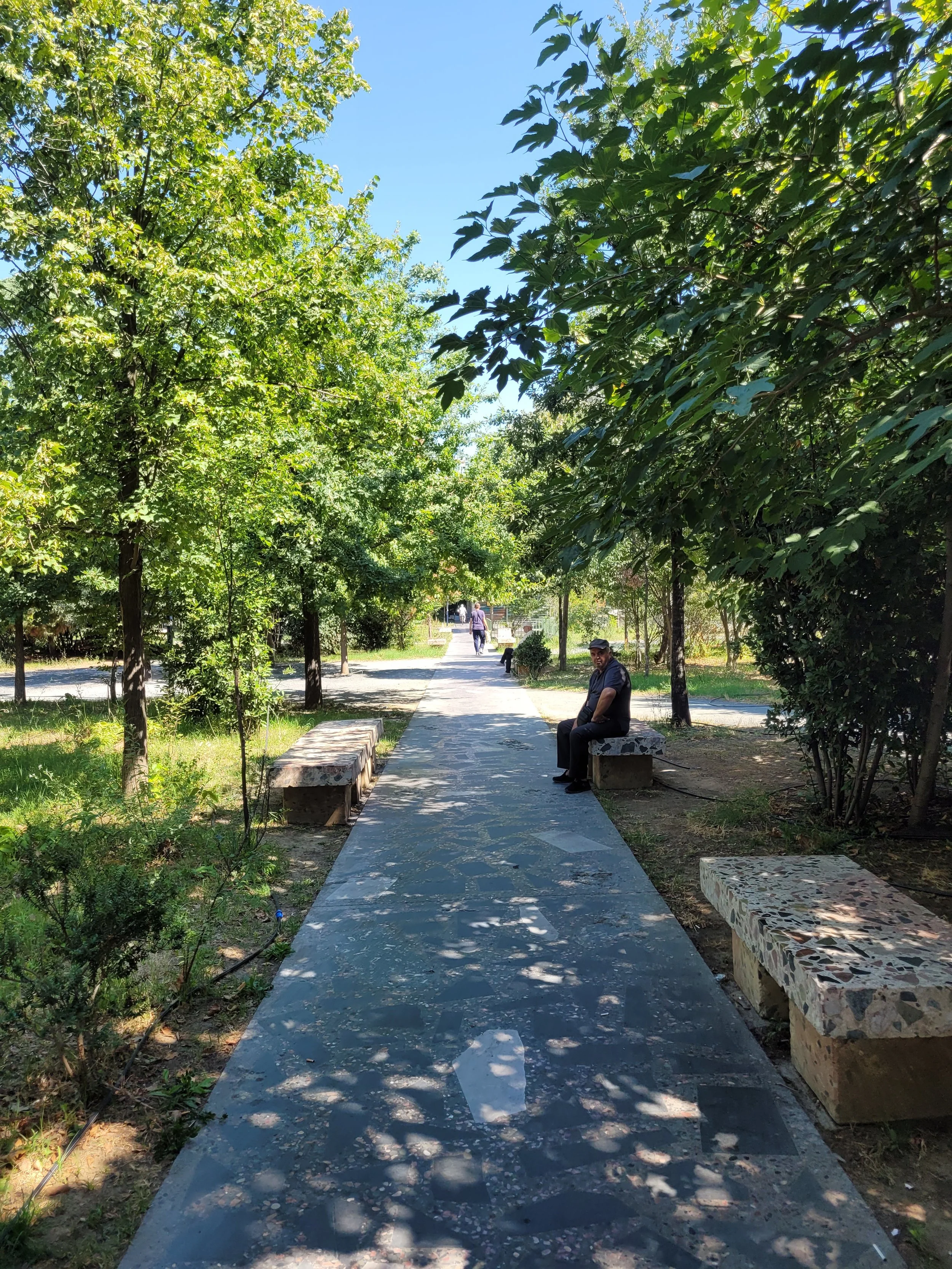 Zahlreiche Bänke laden unter schattigen Bäumen zum Verweilen ein.