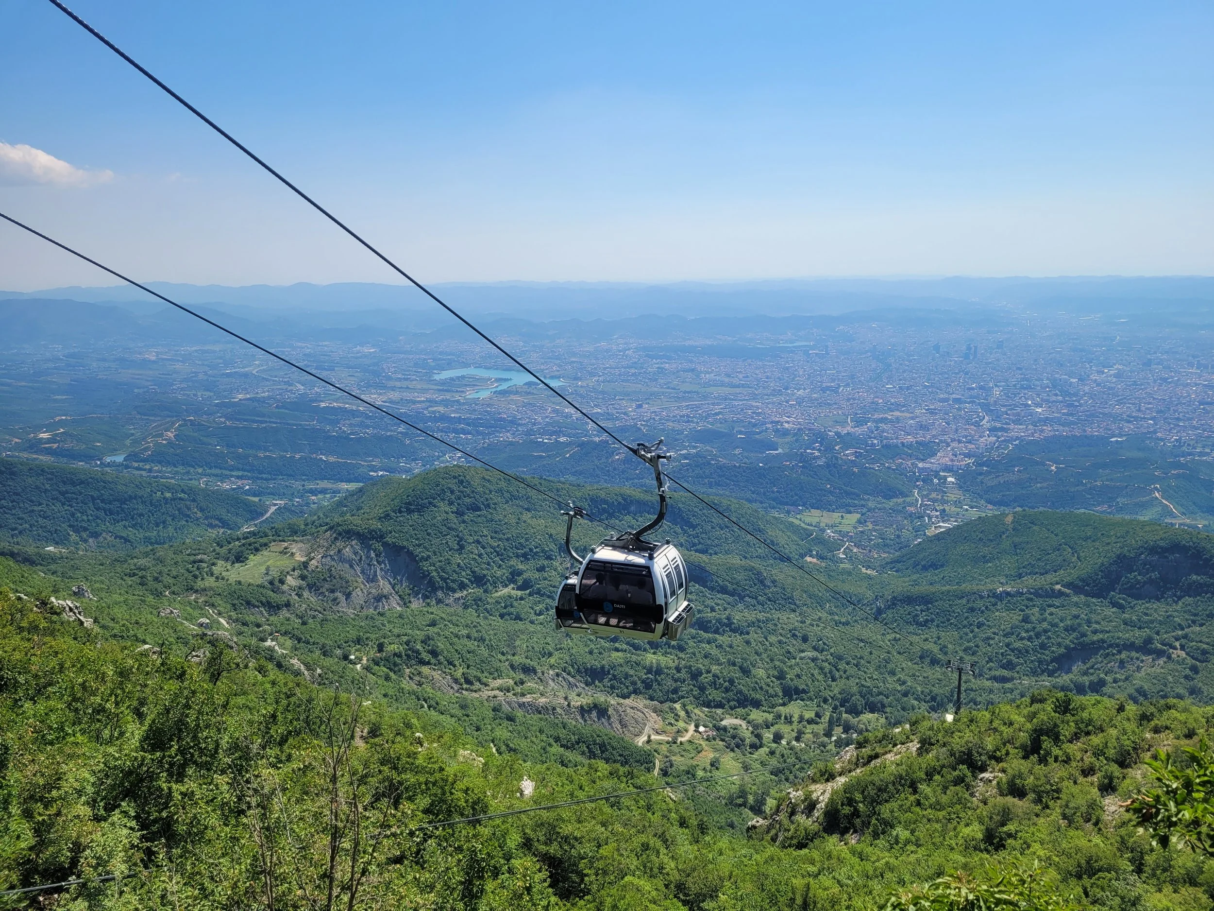 Nach dem Besuch von Bunk Art I marschierten wir zur Talstation des Daijti Express, einer Seilbahn, die die Besucher auf den Berg Dajti führt, wobei man während der ganzen Fahrt einen spektakulären Blick über die Stadt hat.