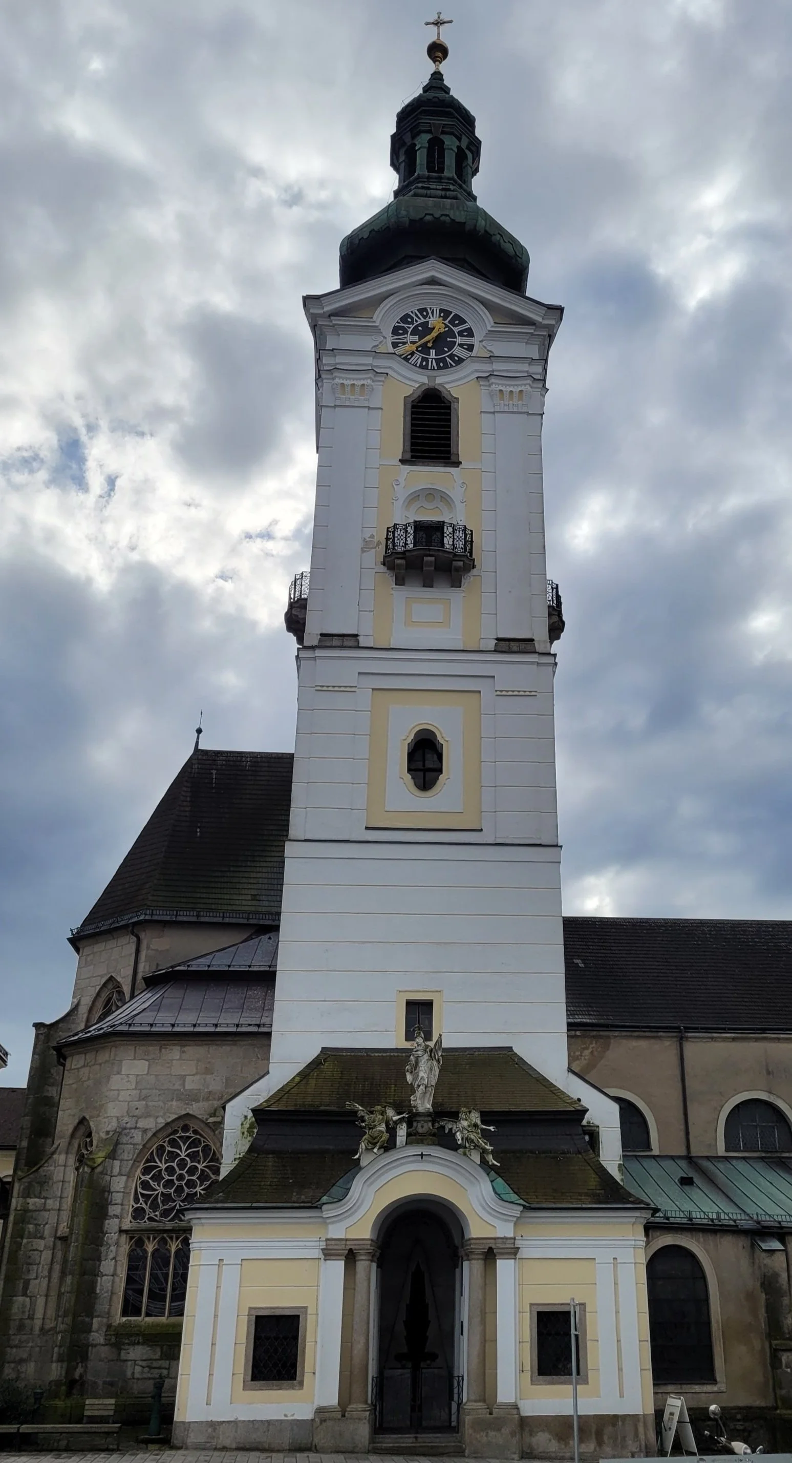 Bald erreichten wir den Hauptplatz, der bereits im 13. Jahrhundert angelegt wurde. Am oberen Ende des Platzes steht die Stadtpfarrkirche, ebenfalls aus dem 13. Jahrhundert.