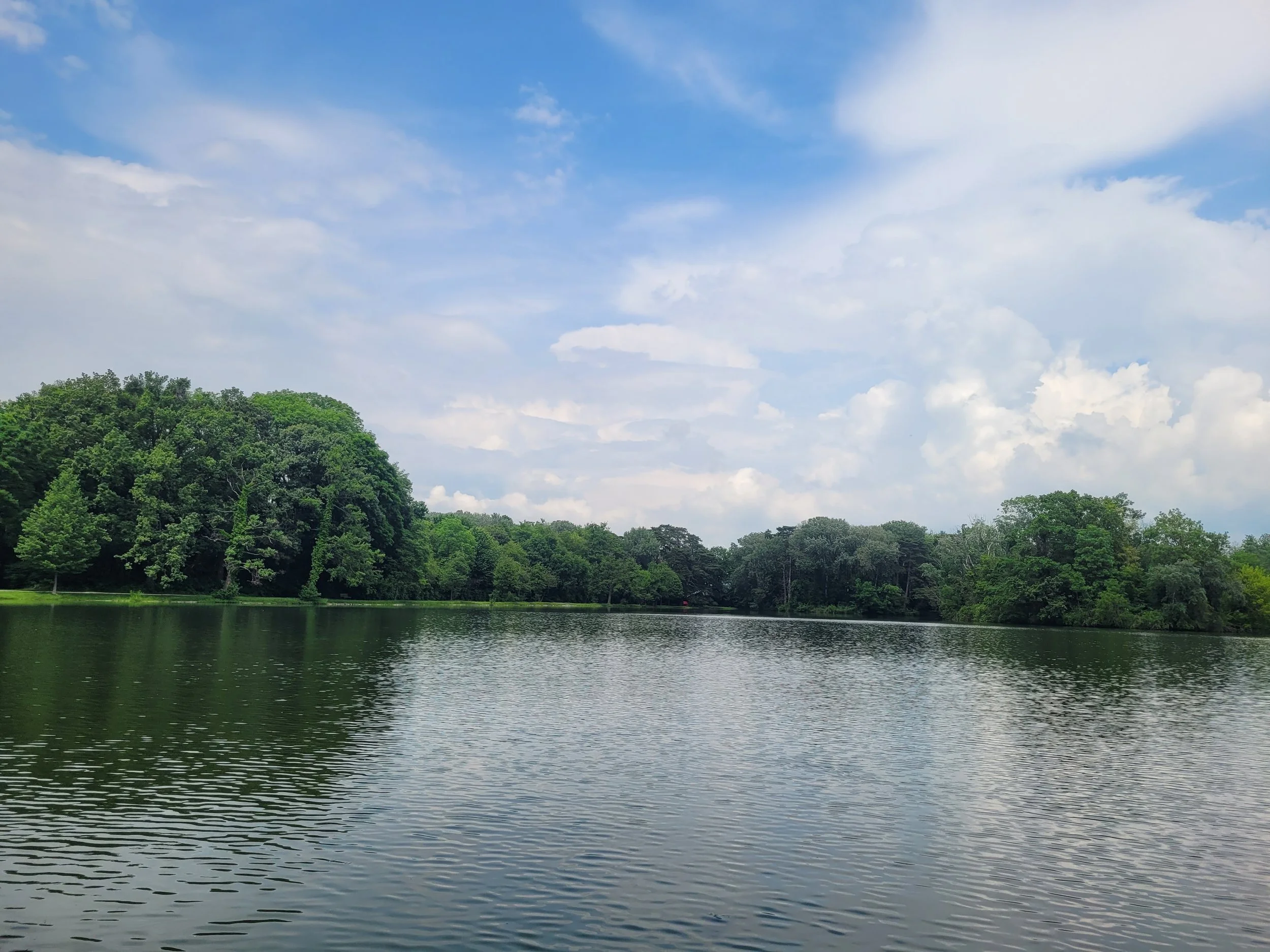 Wir spazierten auf hübschen Wanderwegen durch den Park in Richtung See. Dort liehen wir uns ein Elektroboot aus, mit dem wir den großen Teich erkunden wollten.