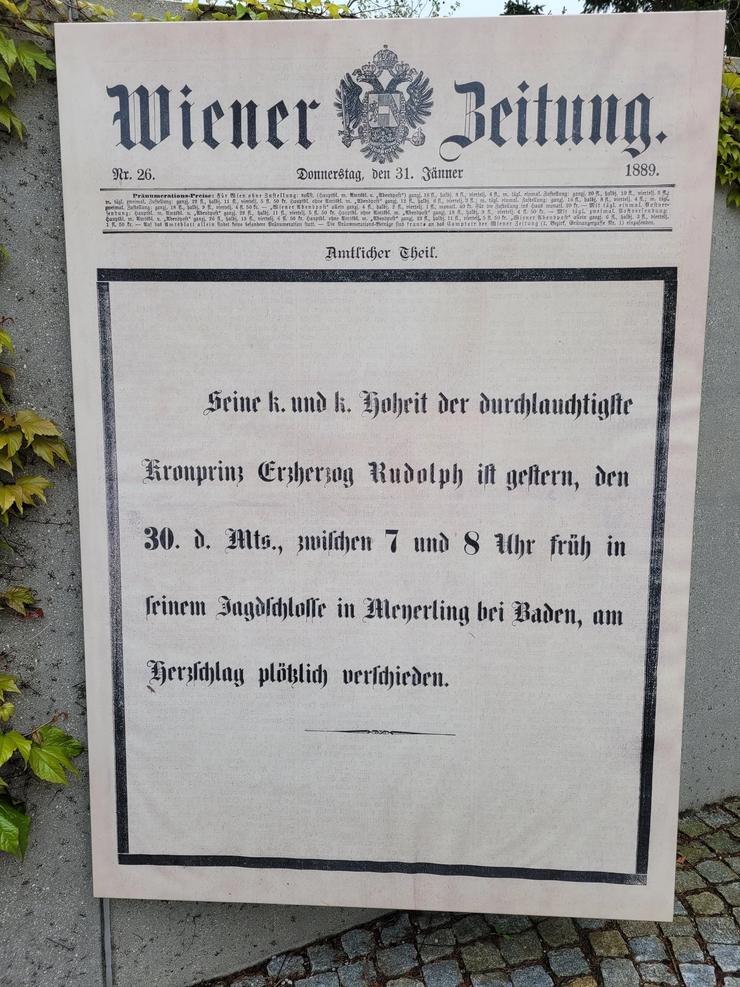 Wir beschlossen nun, auch noch zum nahe gelegenen Friedhof zu spazieren, um das Grab von Mary Vetsera zu besuchen. Als Mitglied der Kaiserfamilie wurde Rudolph hingegen in der Kapuzinergruft in Wien beigesetzt.