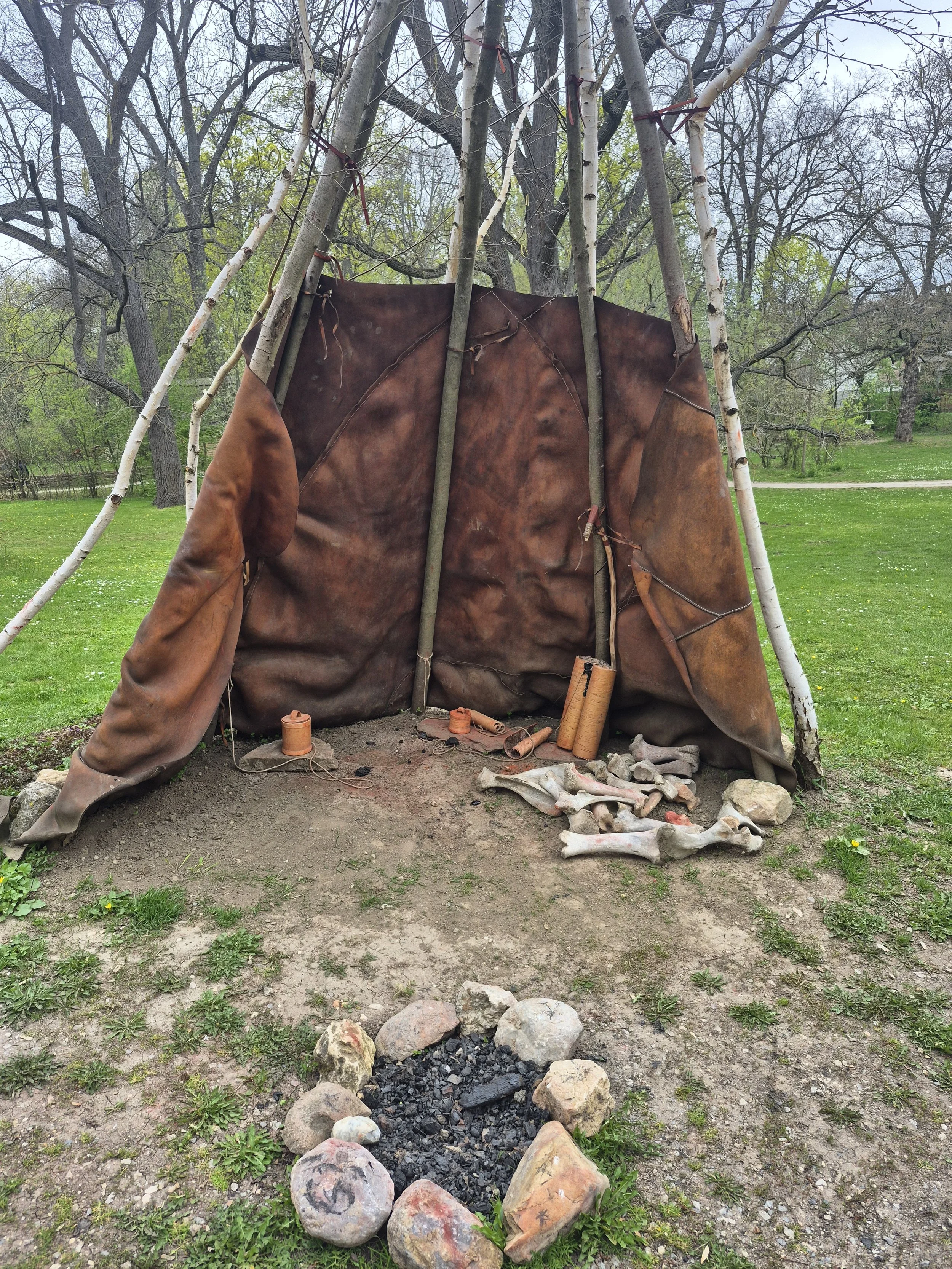 Dort kann man ein typisches Zelt aus der Zeit besichtigen, außerdem sieht man eine Feuerstelle und verschiedene Felle, die als Kleidung verwendet wurden.