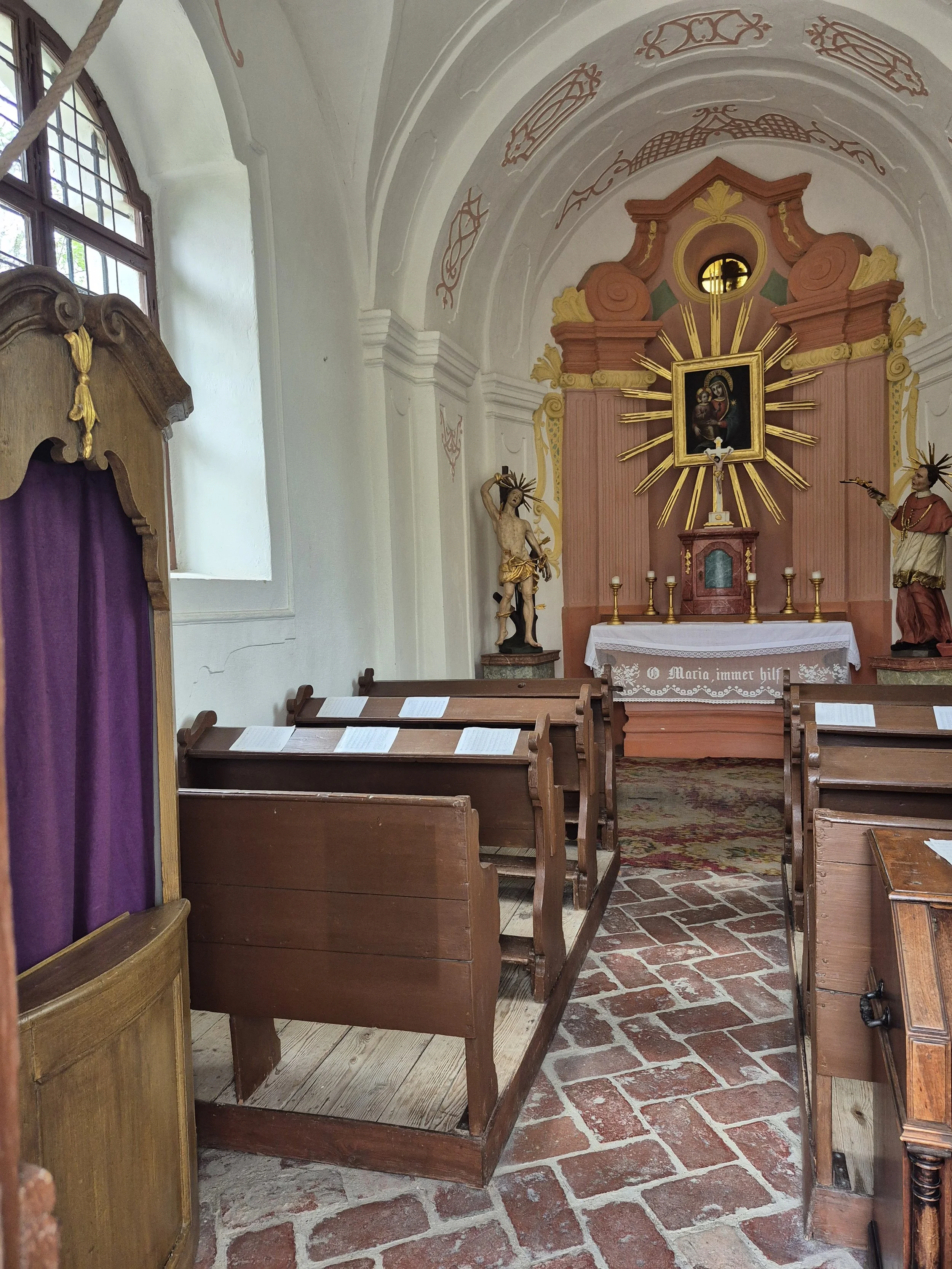 Direkt neben dem Gasthaus befindet sich die kleine Dorfkirche mit angeschlossenem Friedhof. Religion spielte Anfang des 20 Jahrhunderts eine sehr große Rolle.