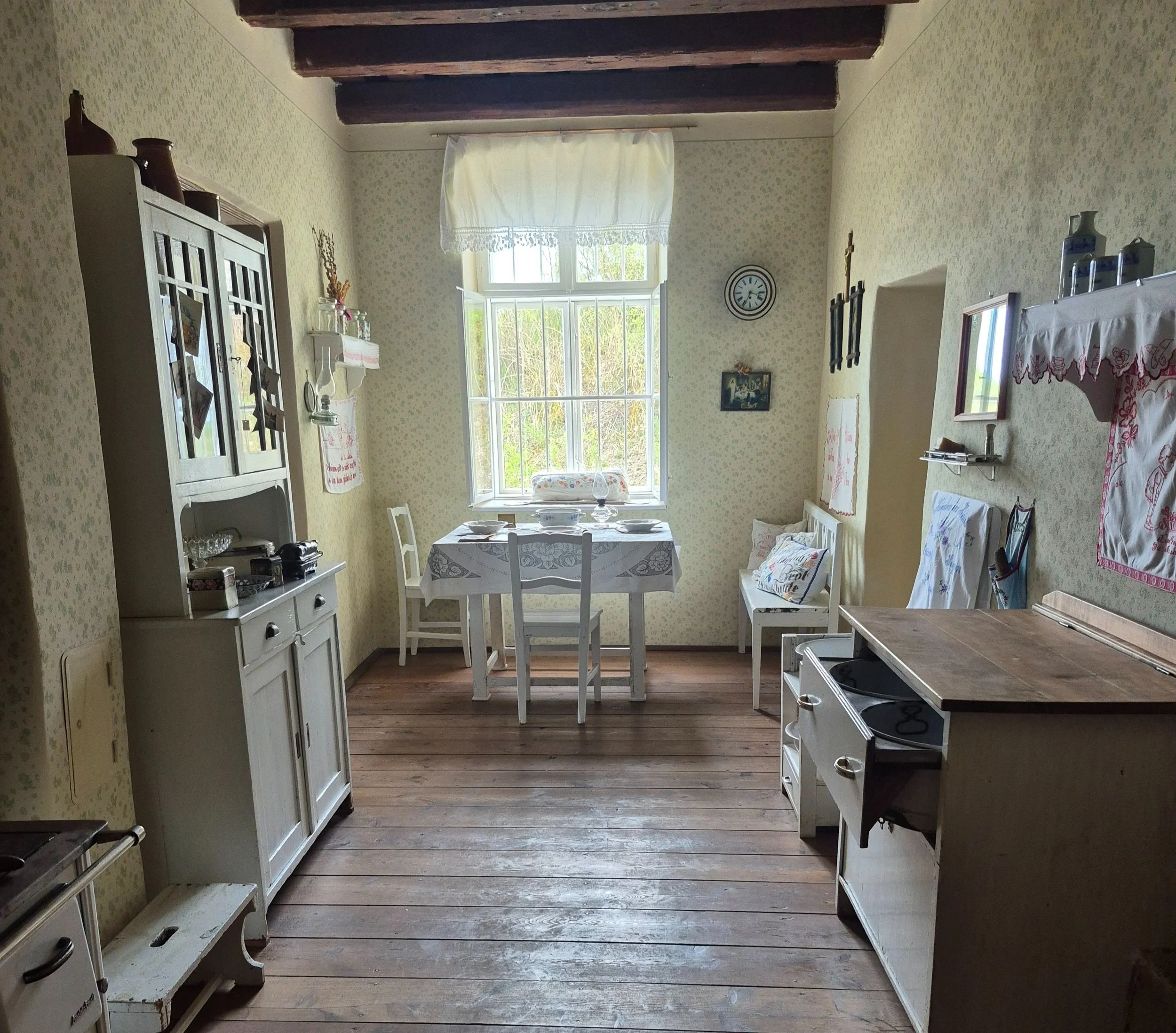 Im hinteren Bereich des Hauses ist die Wohnung des Lehrers untergebracht. Man sieht die Küche, das Schlafzimmer und bekommt so einen guten Eindruck vom Leben des Lehrers damals.