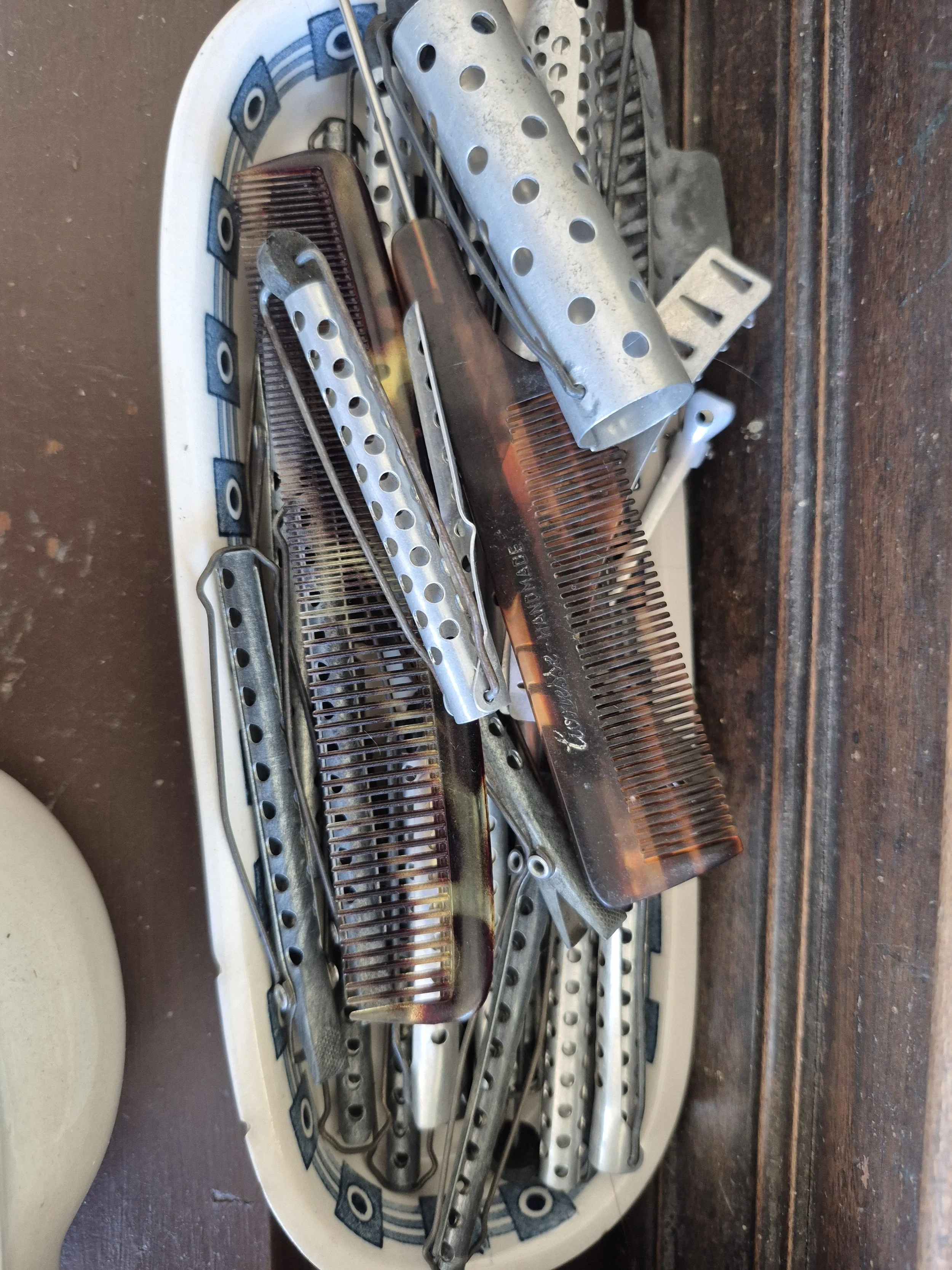 Vor allem die alten Trockenhauben, Kämme und Klammern des Friseurs faszinierten mich.