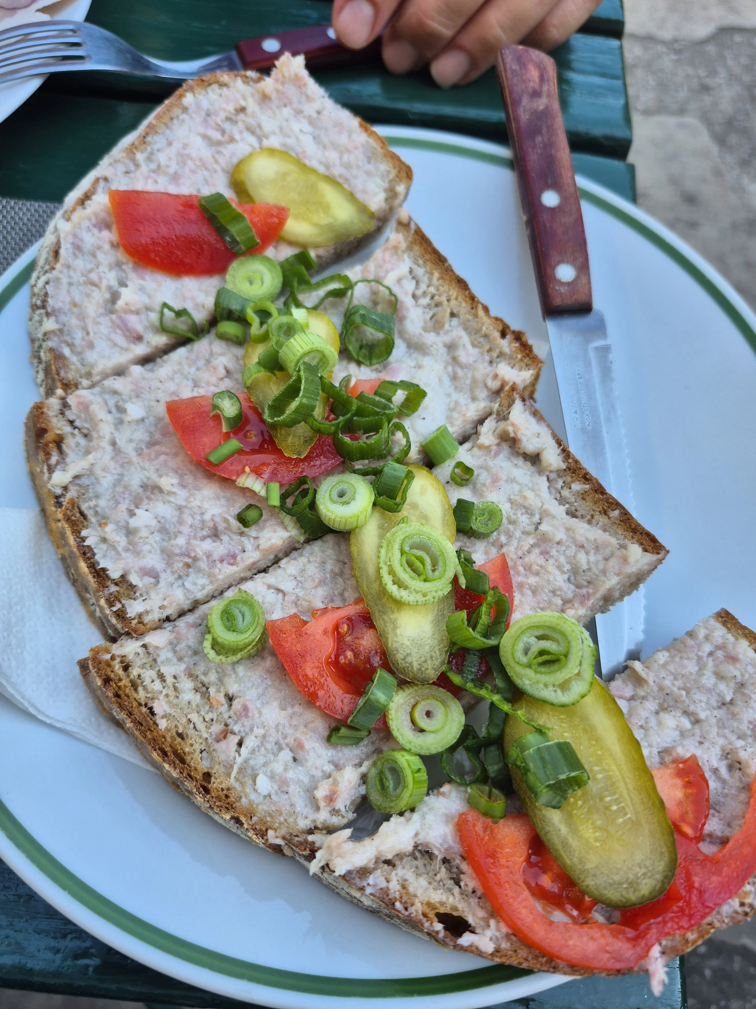 Wir bestellten die traditionellen Speck - , Verhackertes- und Blunznbrote.
