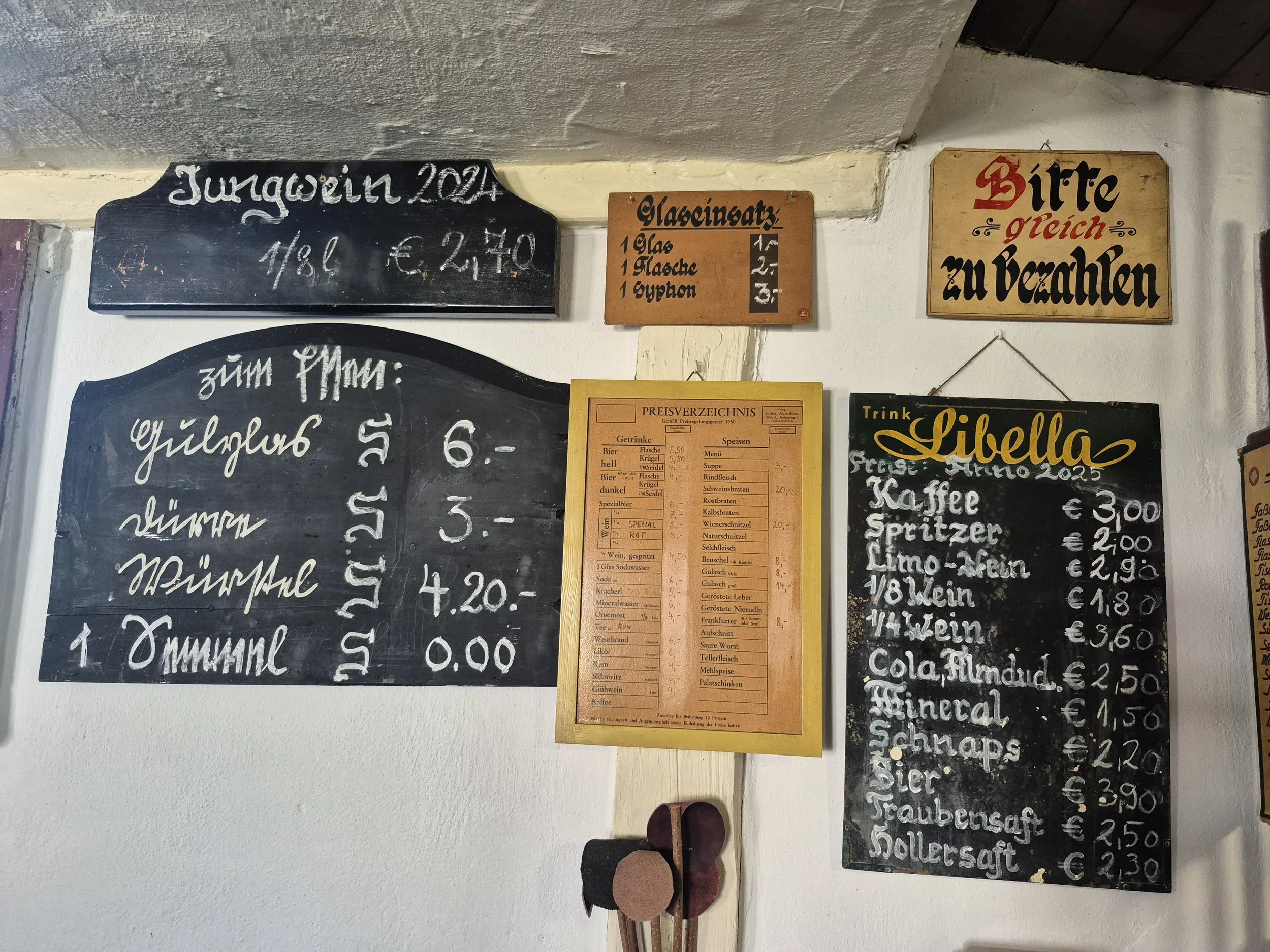 Interessant waren die alte, in Kurrentschrift verfasste Karten - die Preise in Schilling.
