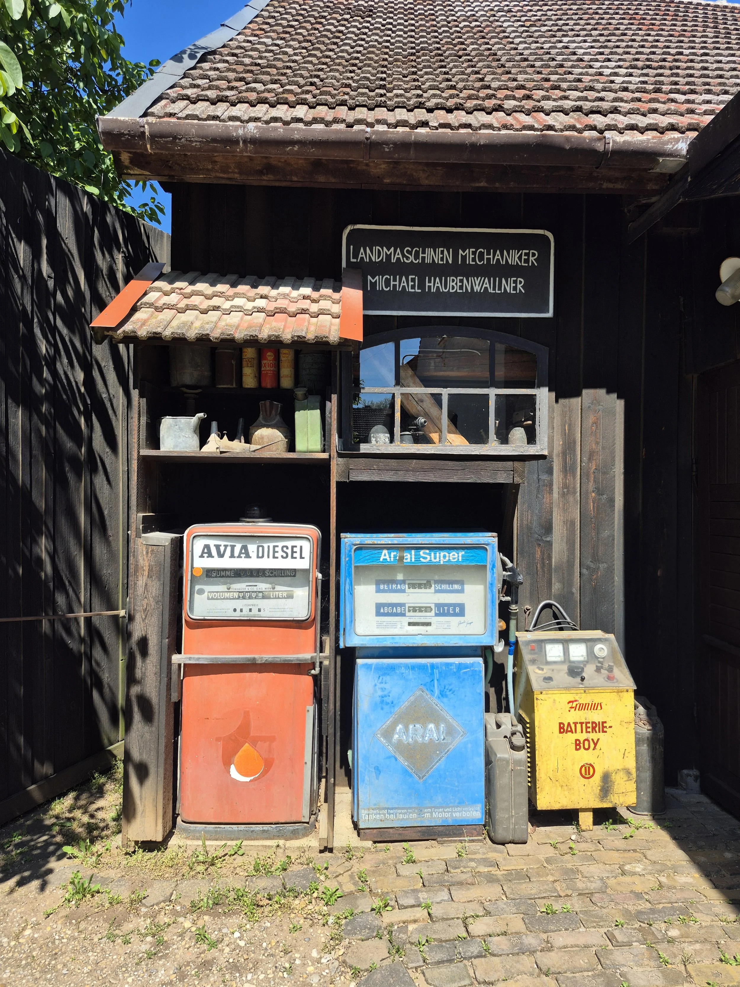 Die angeschlossene Tankstelle war besonders beeindruckend – zwei Zapfsäulen, sonst nichts.