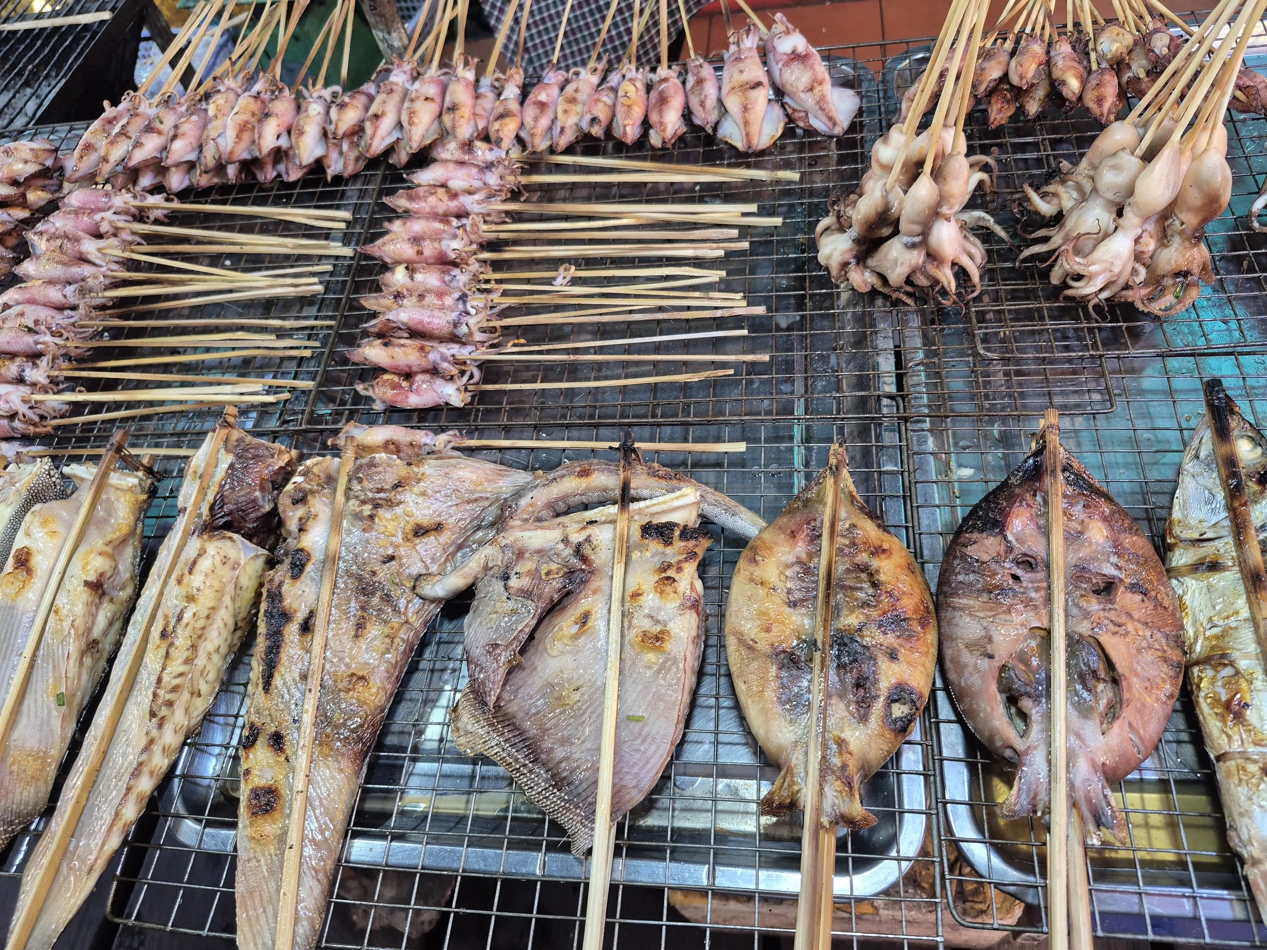 Der letzte Stopp unseres Ausflugs war der weit über die Landesgrenzen bekannte Krabbenmarkt von Kep. Alle Arten von Meeresfrüchten und Fischen kann man dort kaufen oder direkt vor Ort zubereiten lassen und essen. Der frische Tintenfisch und die Garnelen schmeckten uns besonders.