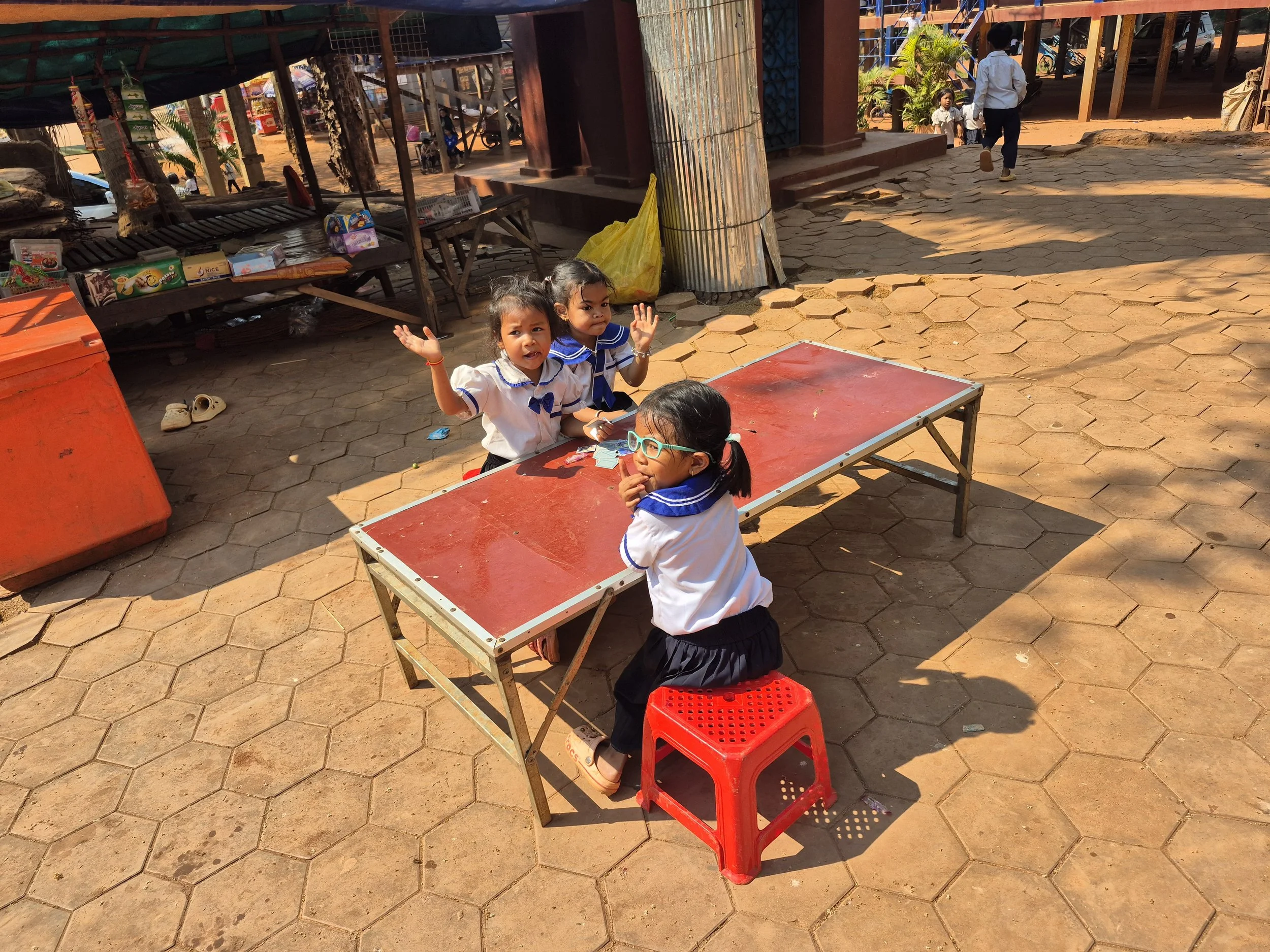 Hier bekamen wir einen sehr guten Eindruck vom Alltagsleben in einem Dorf in Kambodscha. Wir sahen sogar Kinder, die gerade in der Schule lernten.
