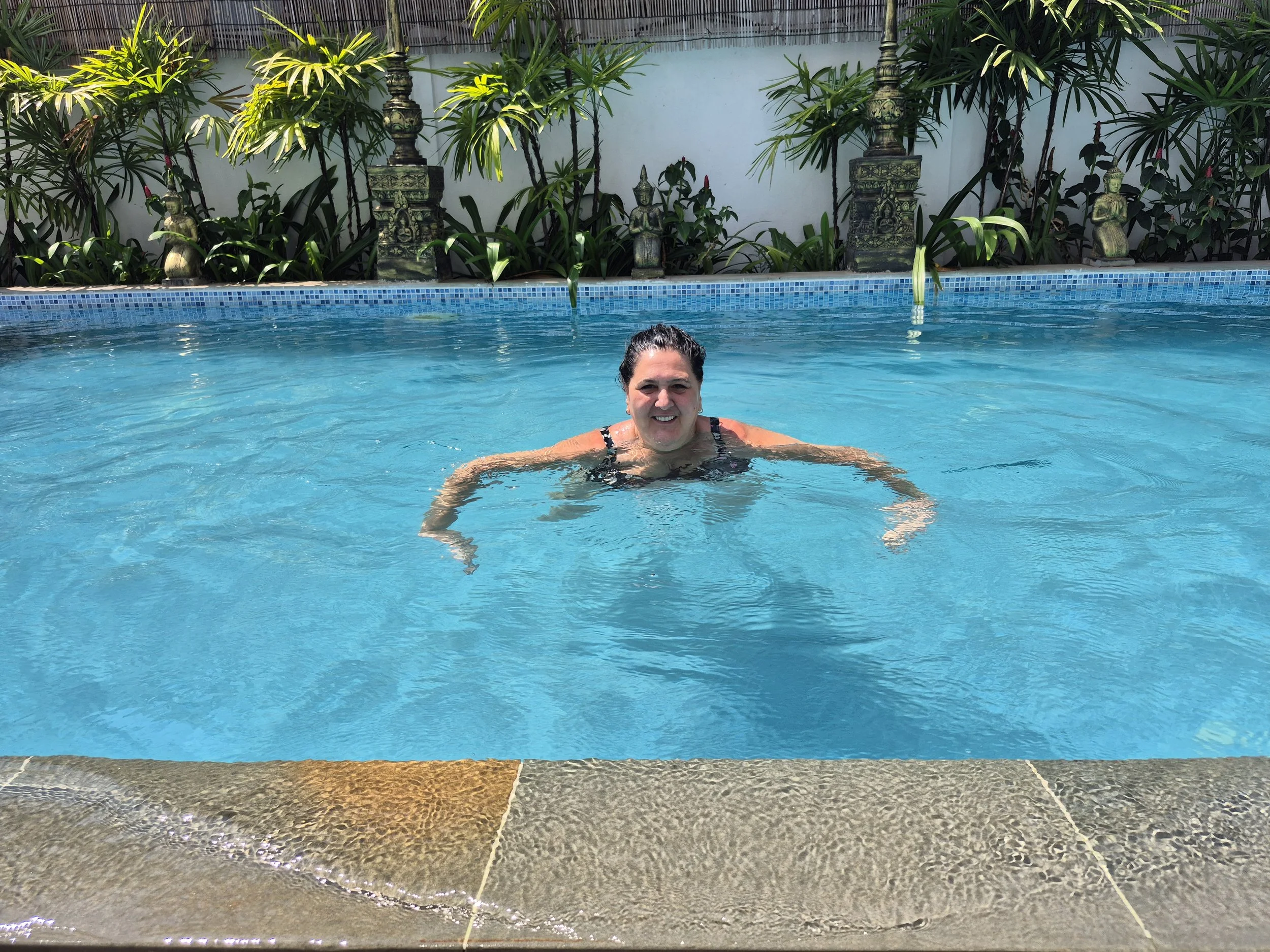 Den Nachmittag verbrachten wir wieder am und im Pool, teilweise schlafend, teilweise lesend, und genossen das kühle Nass bei unglaublichen 35 Grad im Schatten.