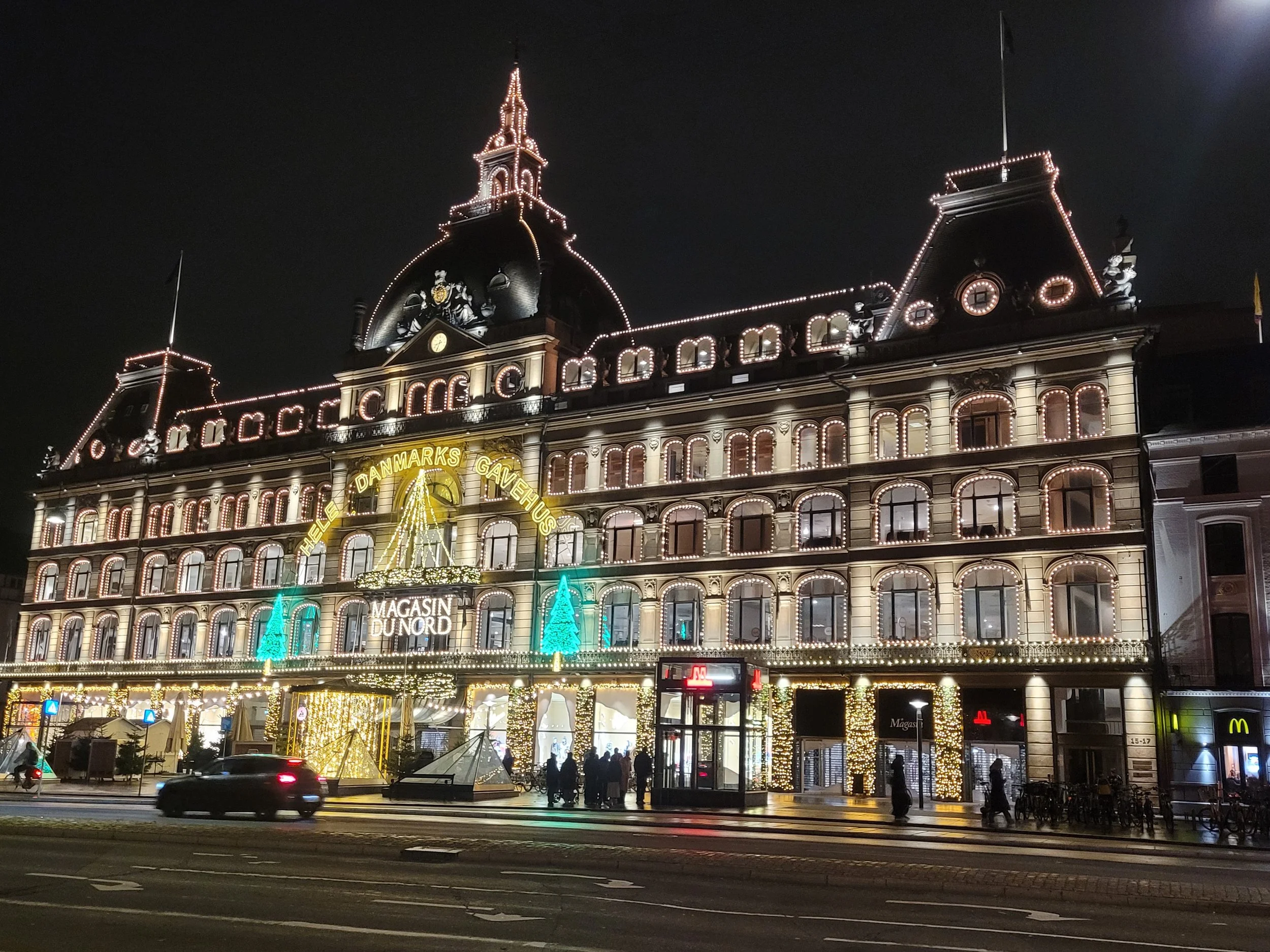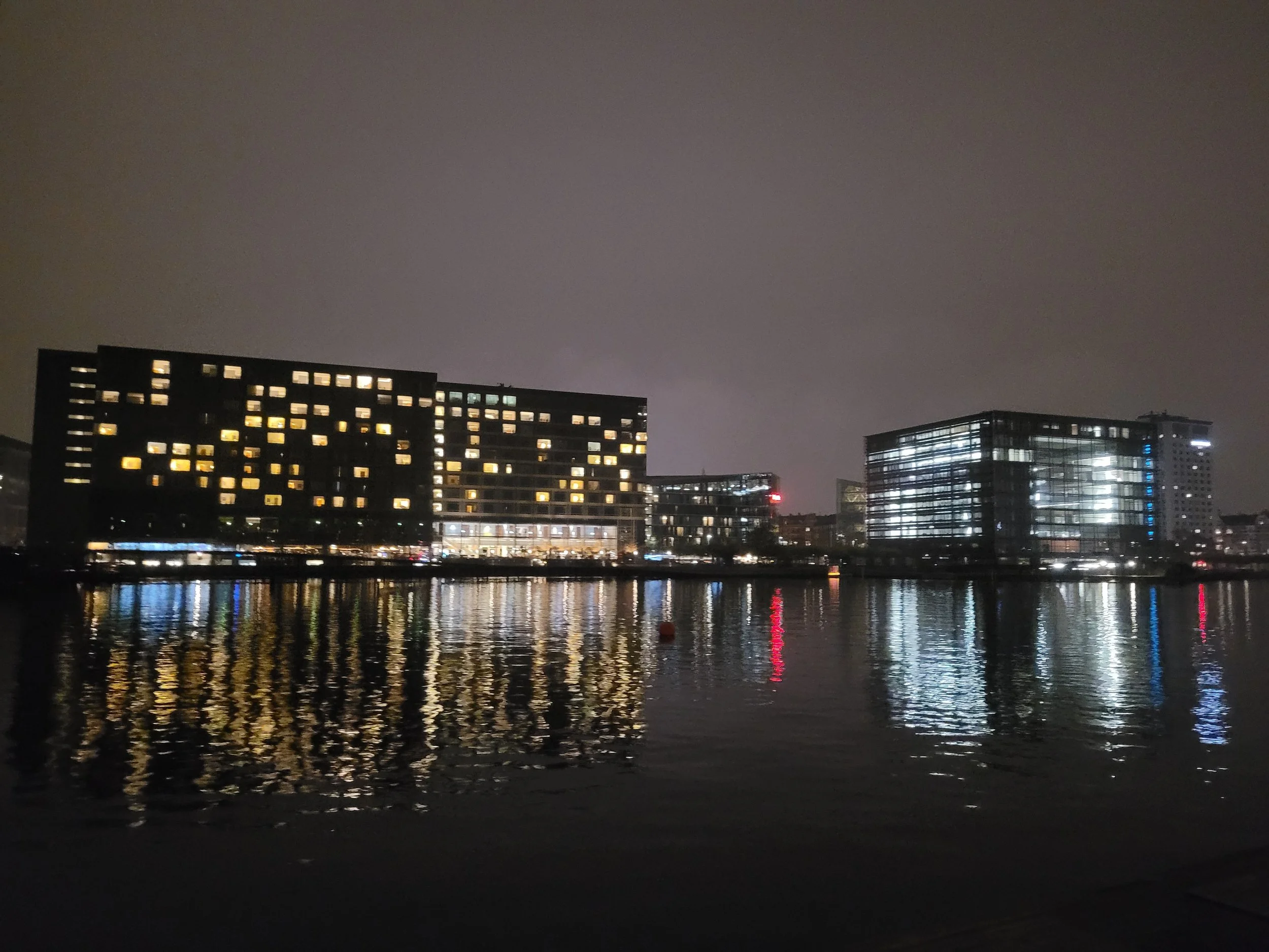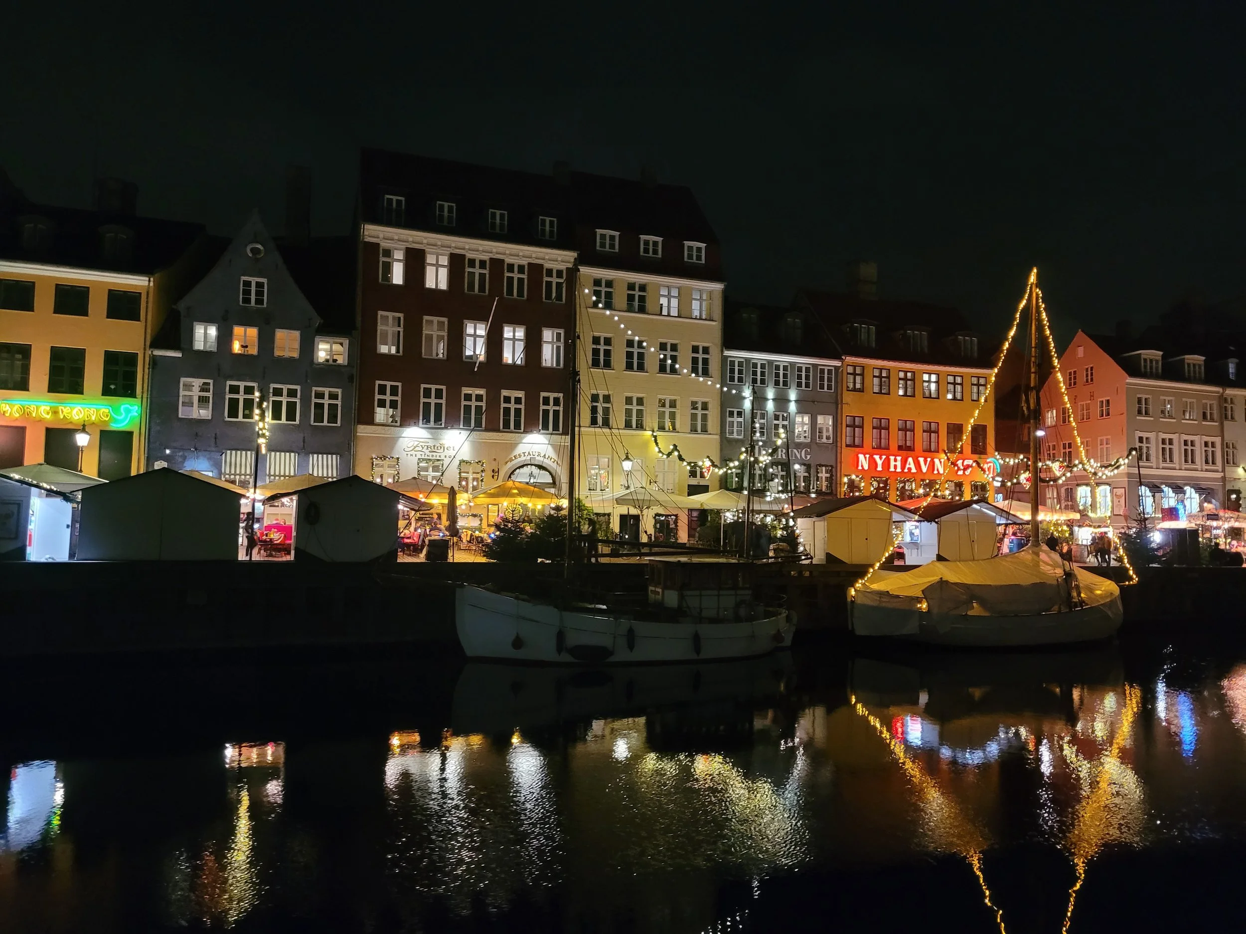 Da es zu regnen begann, beschlossen wir noch eine Rundfahrt mit dem Hafenbus zu machen. Es war traumhaft schön, das hell erleuchtete Kopenhagen vom Wasser aus zu sehen. Nach einer ganzen Runde stiegen wir am Nyhavn wieder aus.