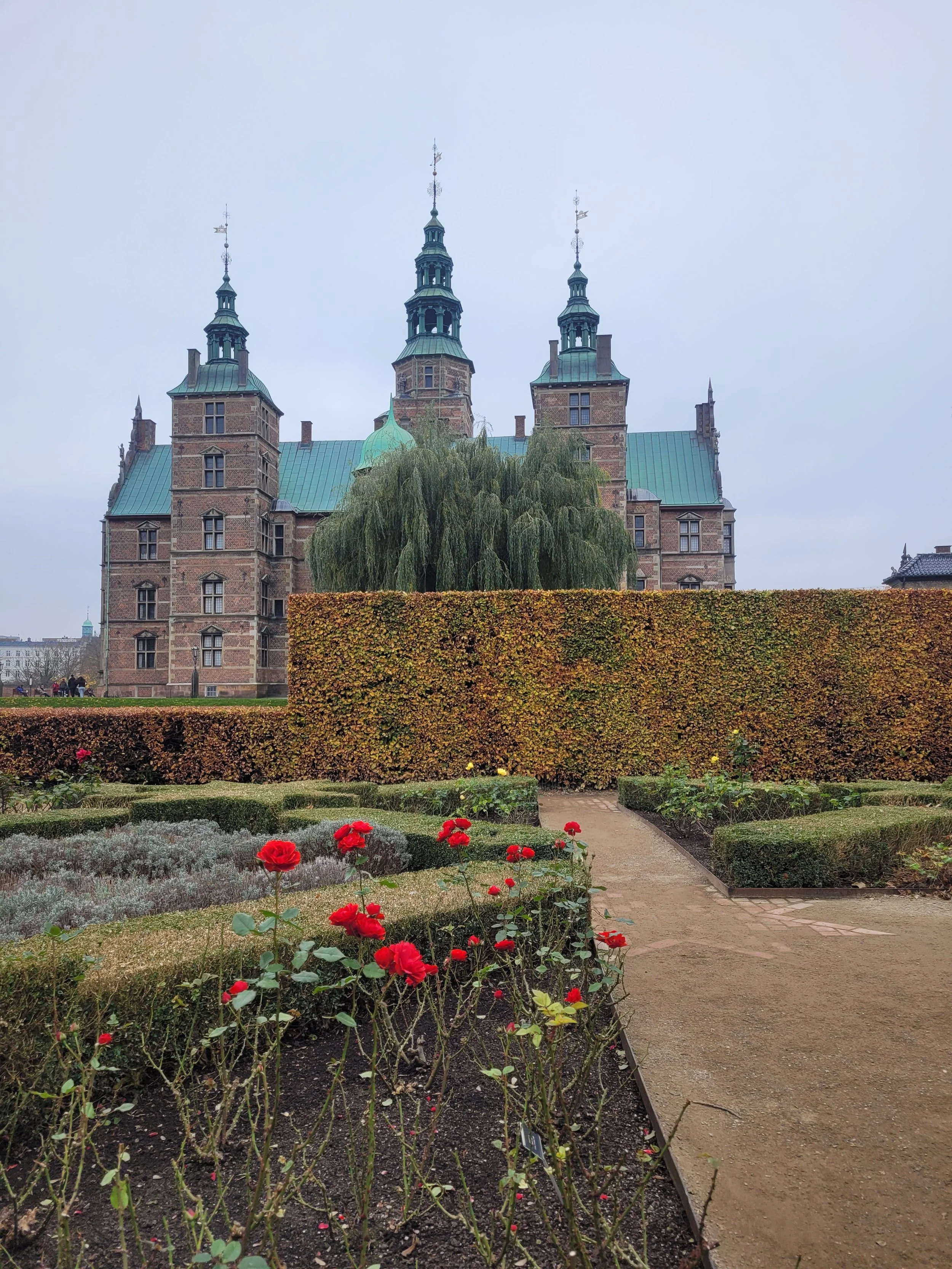 Dann machten wir uns auf den Weg zu Schloss Rosenborg, das idyllisch in einer der schönsten Parkanlagen der Stadt liegt – dem King’s Garden. Wir spazierten durch diesen weitläufigen Park, der sogar im Winter wunderschön war. Tatsächlich blühten sogar einige Rosen.