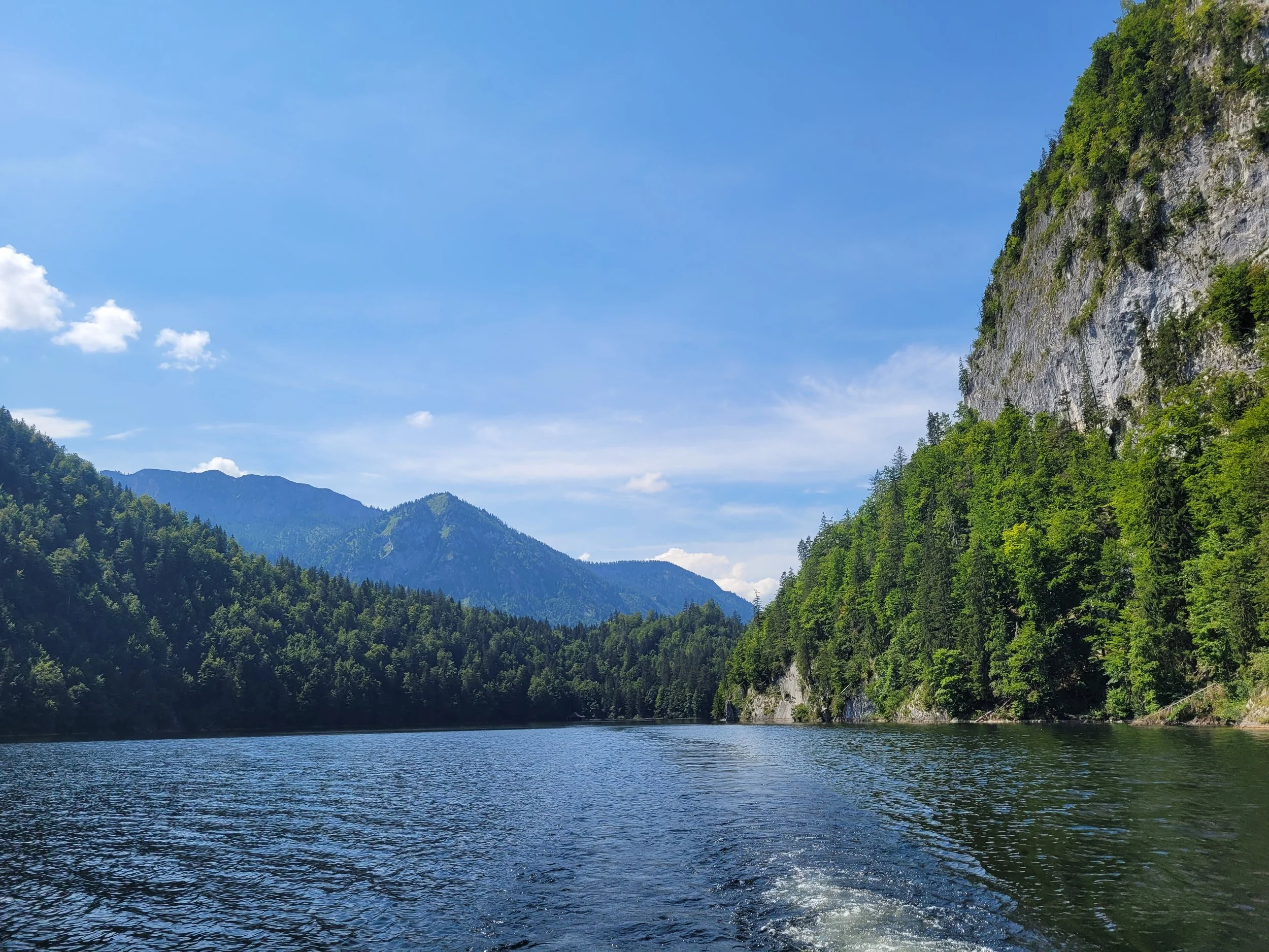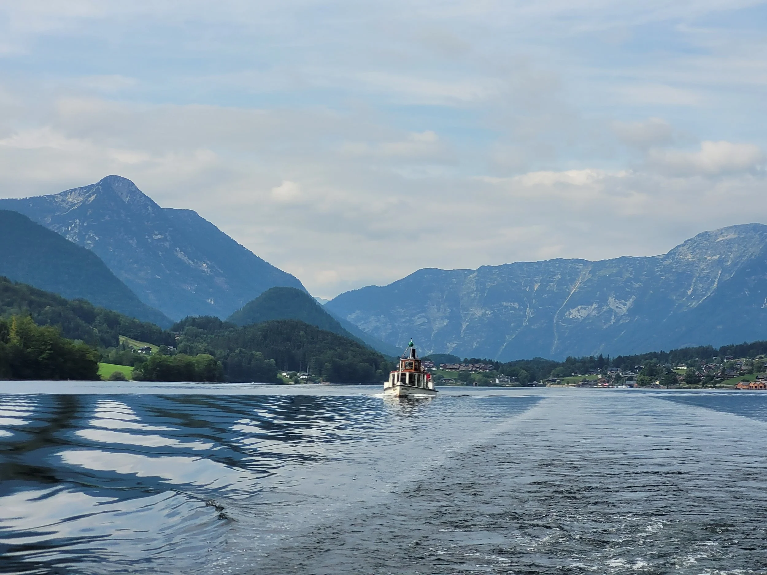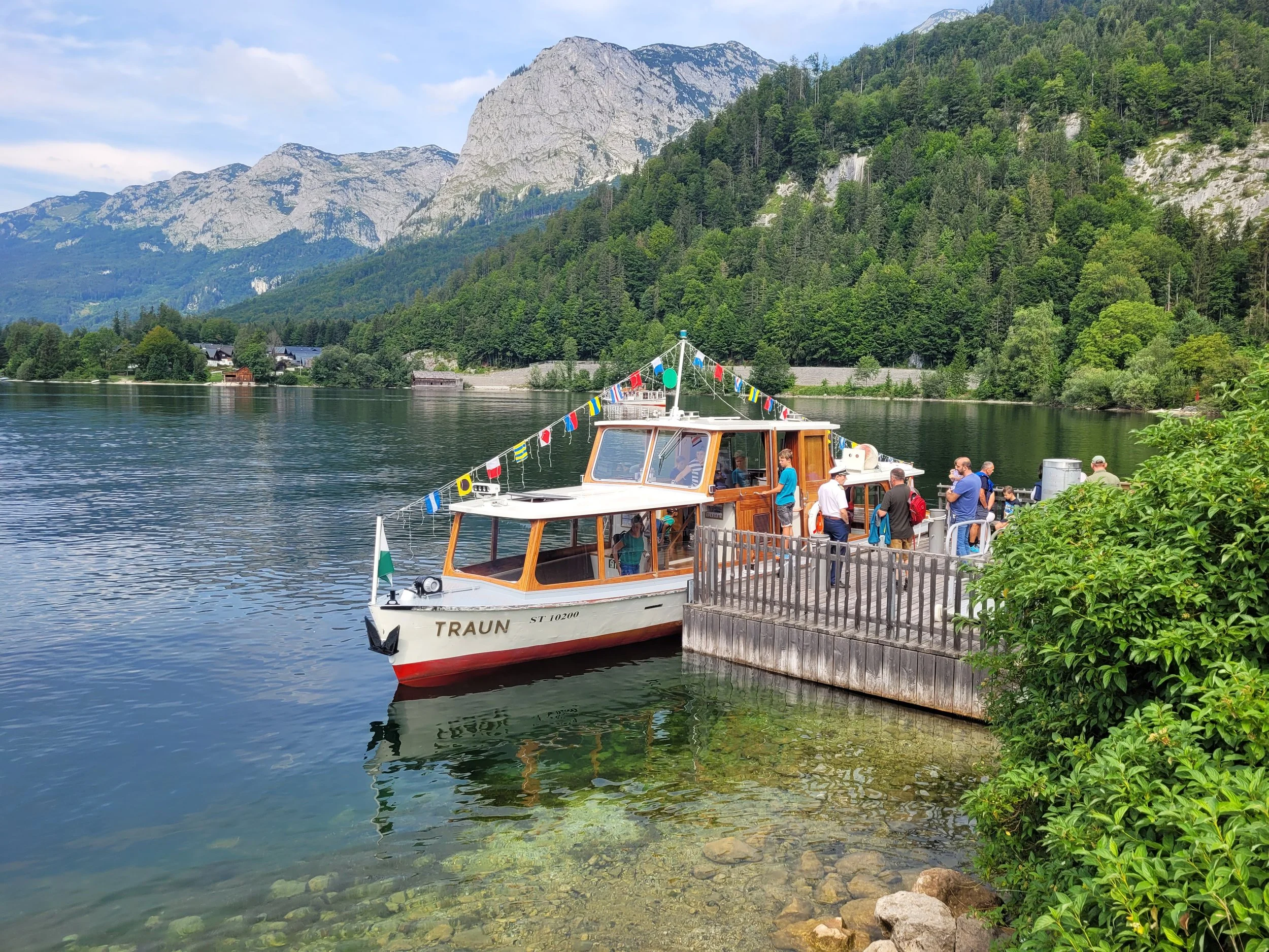 Im Ort Grundlsee bestiegen wir ein Schiff, dass uns ans andere Ende des Sees brachte. Unterwegs genossen wir das traumhafte Panorama, das diesen wunderschönen See umgibt. Am Ufer sahen wir malerische Ortschaften und schroffe Berge. Alles wirkte wie aus einem Bilderbuch.