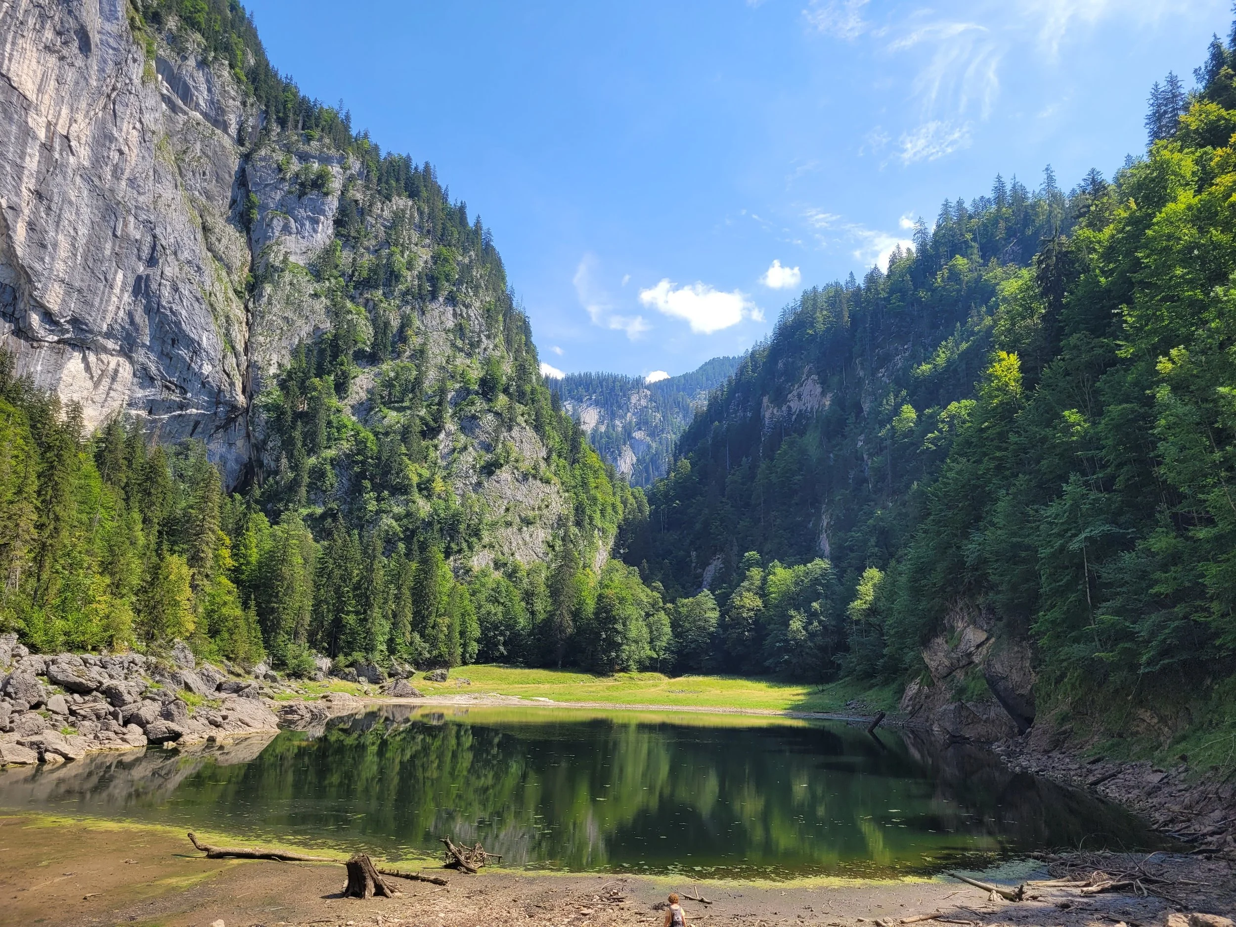 Romantisch liegt dieser winzige See mitten in einem Wald umgeben von Bergen und strahlt trotz der zahlreichen Besucher eine unglaubliche Ruhe aus.