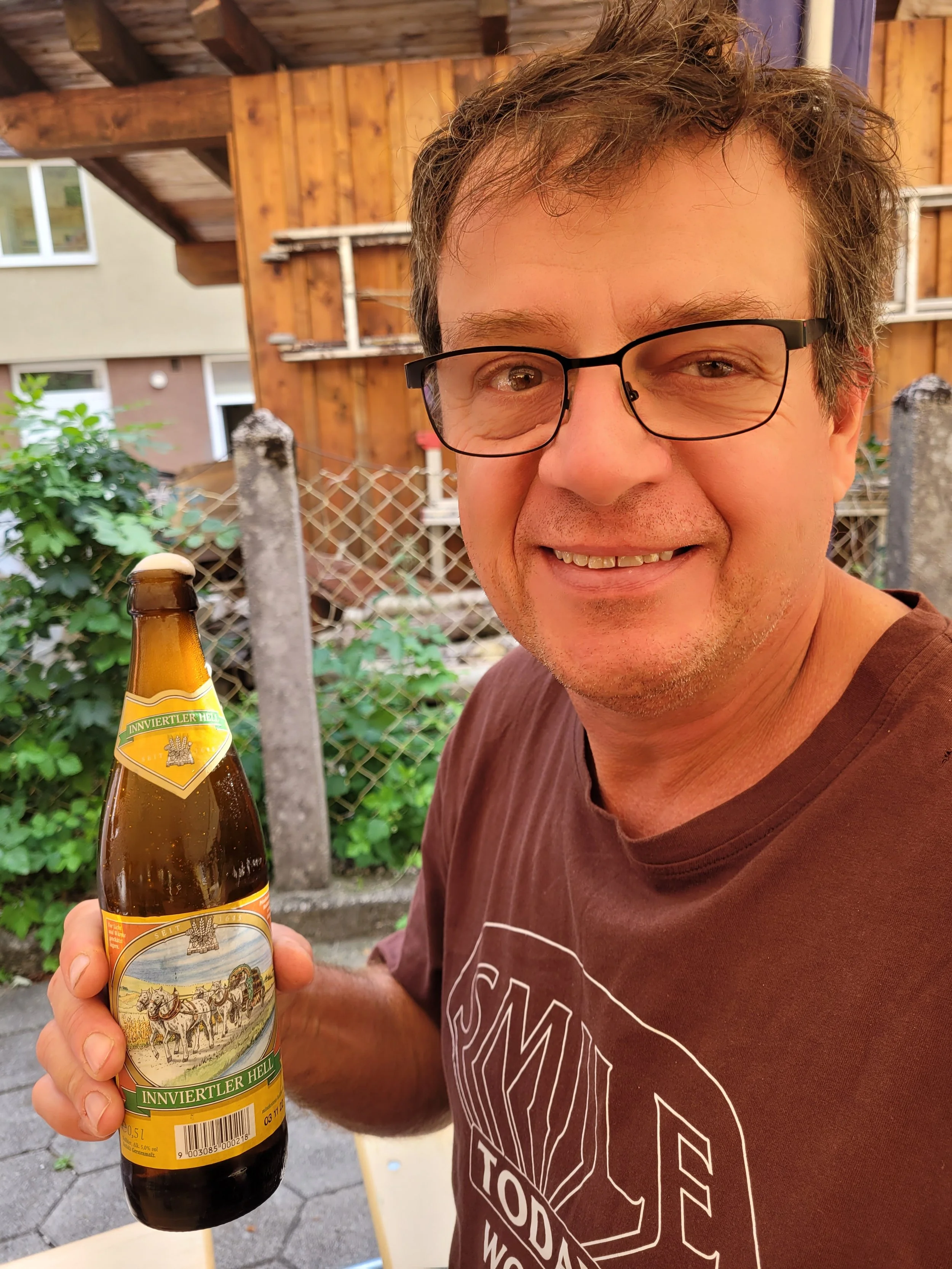 Dort fanden gerade die Feierlichkeiten zum 15. August – Maria Himmelfahrt – statt. Es wurde ein Kirtag gefeiert. An einem der Tisch sahen wir unseren Wirten mit einigen seiner Freunde. Als er uns erkannte, rief er uns zu sich und so verbrachten wir den restlichen Nachmittag in netter Runde. Das Gewitter hatte sich zum Glück genauso schnell verzogen, wie es gekommen war.