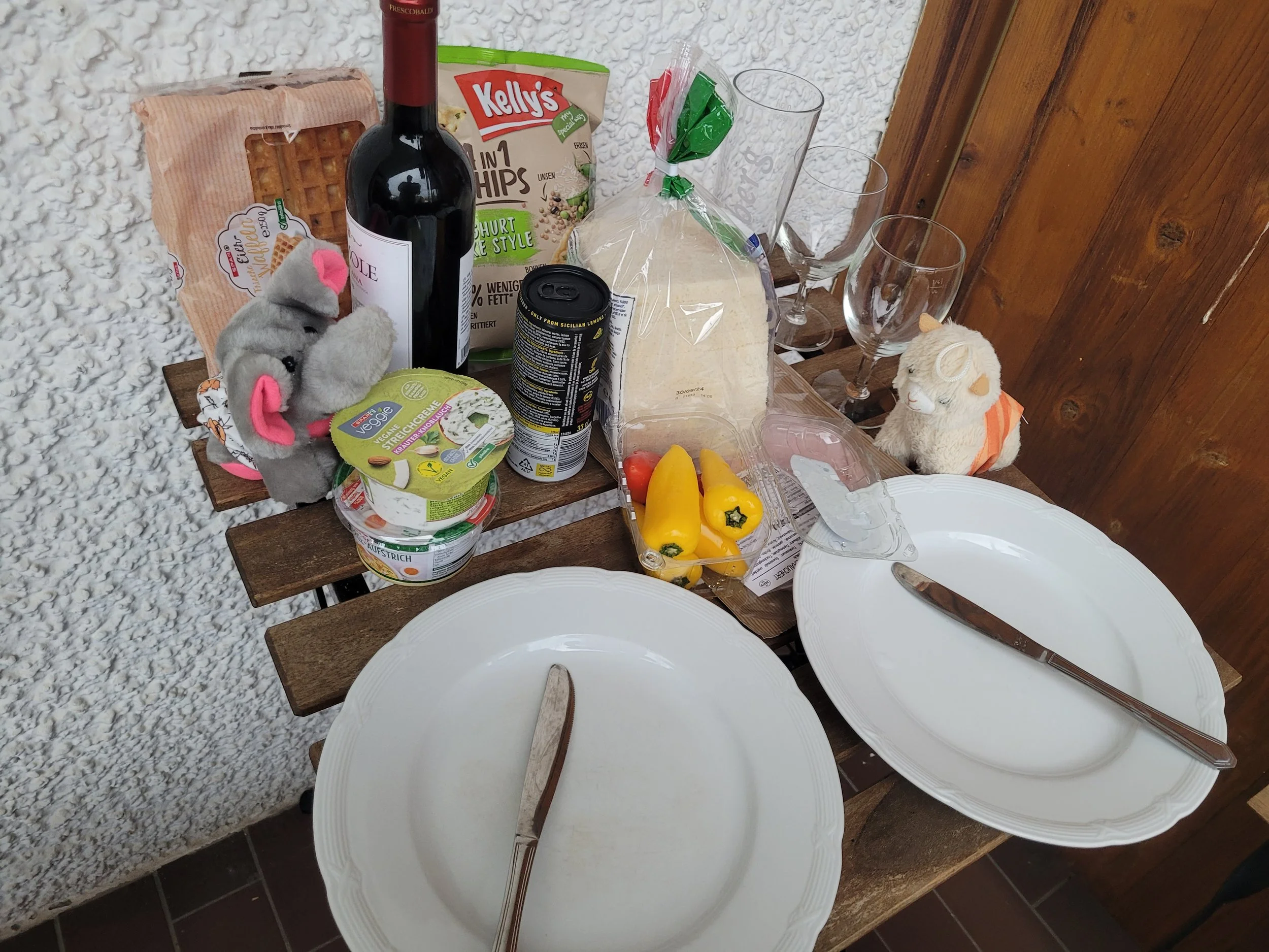 Auf dem Weg zum Hotel besorgten wir uns noch ein paar Kleinigkeiten zum Abendessen, die wir auf unserem Balkon verspeisten.
