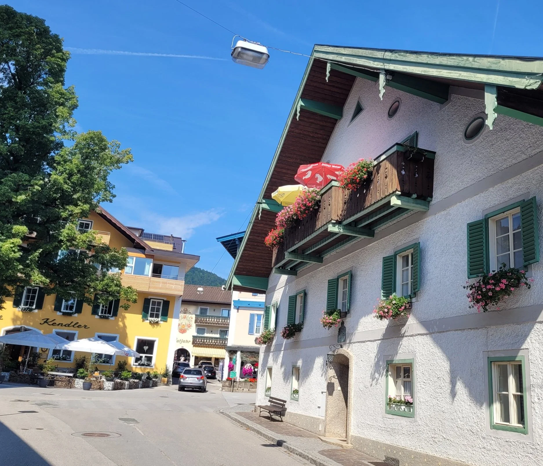 Anschließend machten wir uns auf den Weg zum Ufer des Sees, wo sich das berühmte „Weiße Rössl“ befindet. Dort hätten wir gerne einen Kaffee getrunken, man kommt in dieses traditionelle Restaurant aber nur mit Reservierung und besonders im Sommer ist alles auf Monate hin ausgebucht.