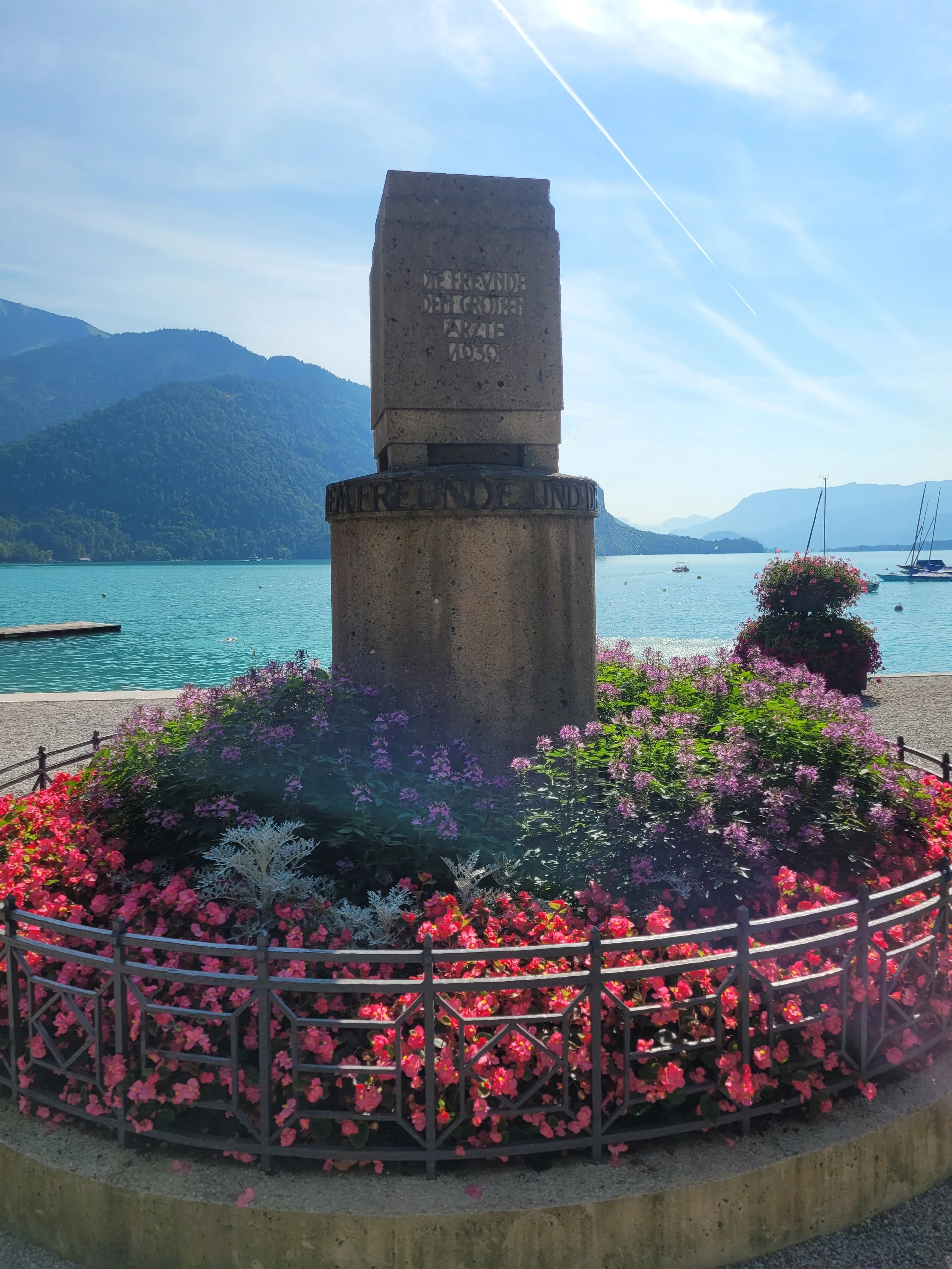 Direkt nach dem Frühstück brachen wir auf. Zuerst ging es zum Mondsee. Dieser liegt eingebettet zwischen sanften Hügeln, aber auch schroffe Kalksteinfelsen prägen das Ufer.