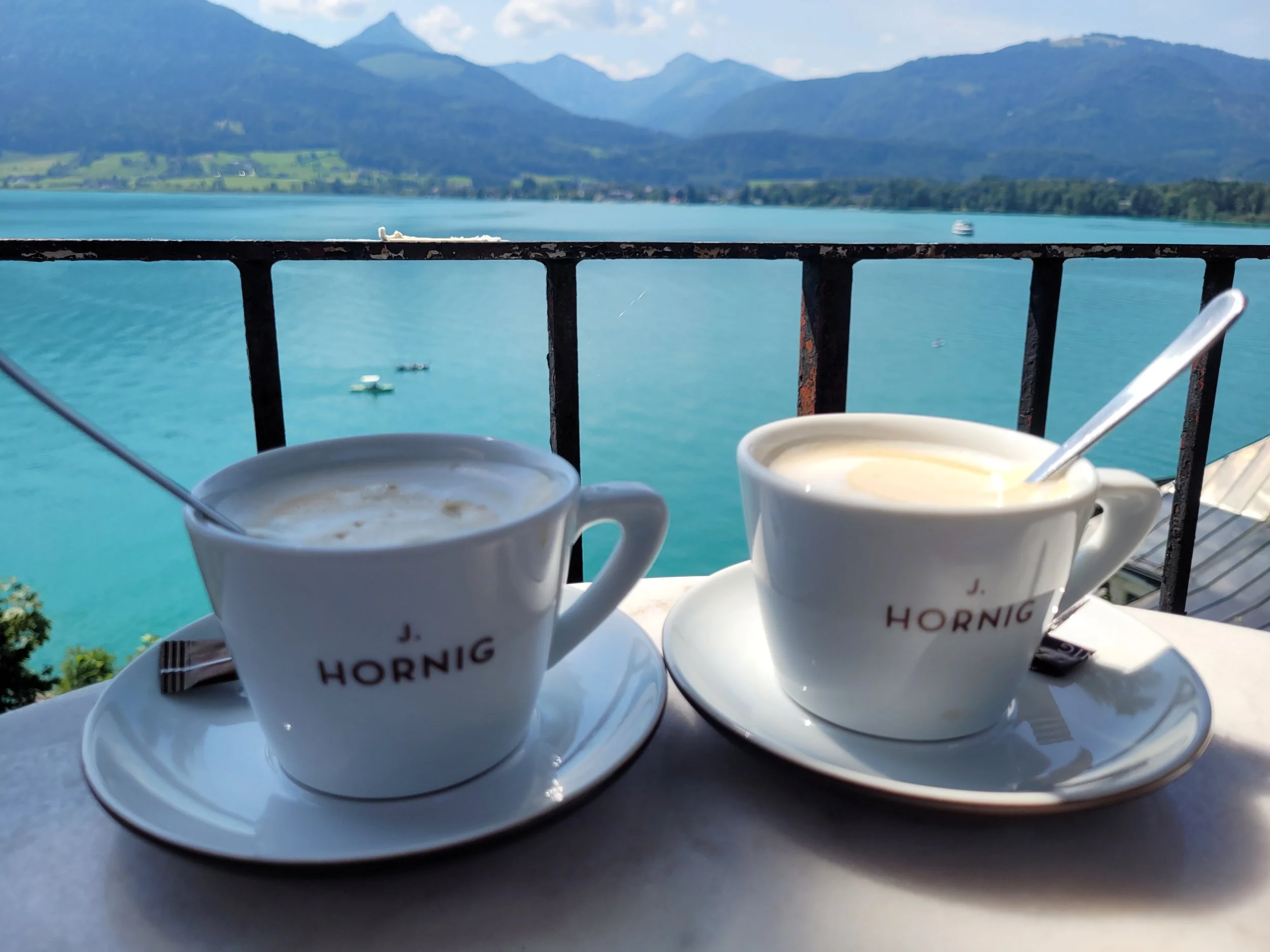 Weiter ging es nach St. Wolfgang, dem Hauptort des Wolfgangsees. Wir parkten am Ortseingang und gönnten uns erste einmal in einem Café hoch über dem See eine Pause.