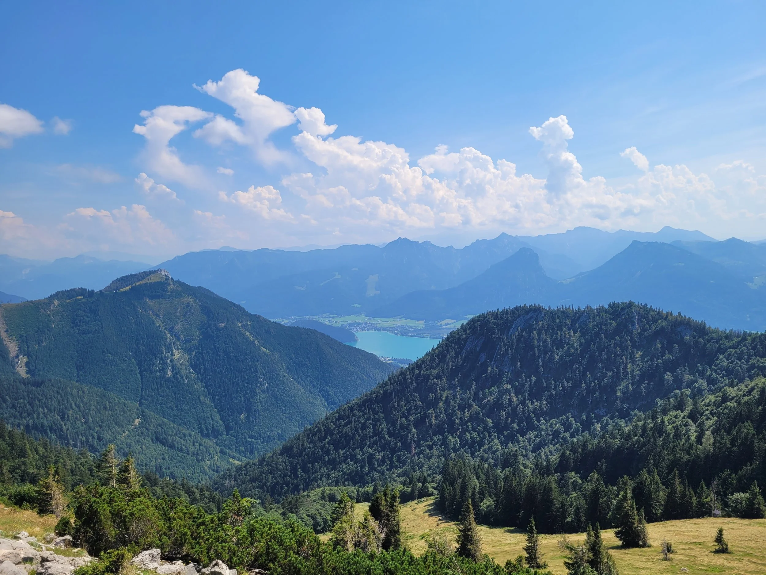 Nahe der Hütte befand sich ein kurzer Spazierweg, von wo aus wir einen weiteren beeindruckenden Blick über Attersee, Mondsee und Irrsee hatten.