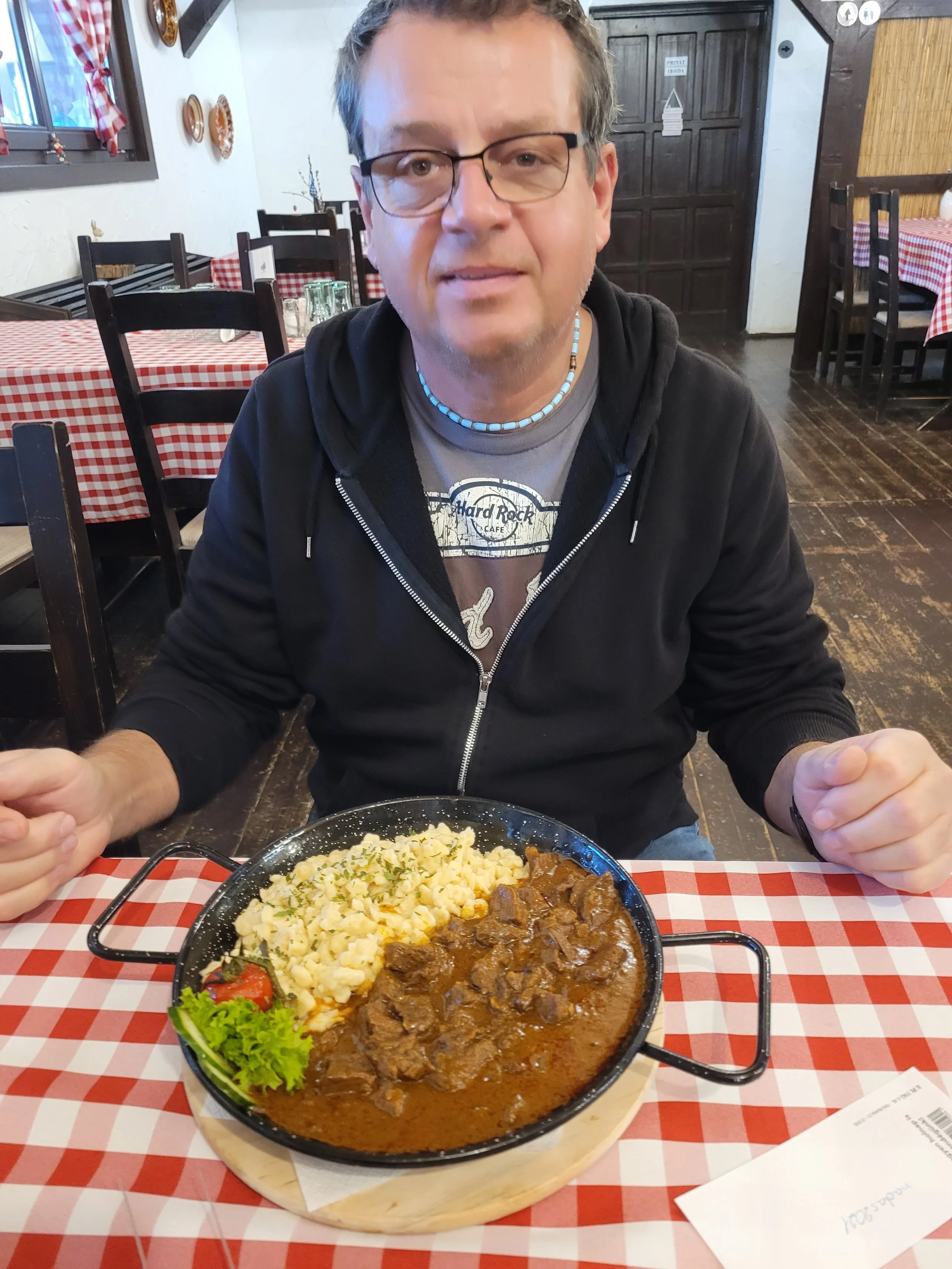 Unterwegs hielten wir noch bei einer gemütlichen, typischen Csarda, wo wir traditionelles Pörkölt, gegrilltes Hühnerfilet mit Pommes und knackigen Salat aßen.