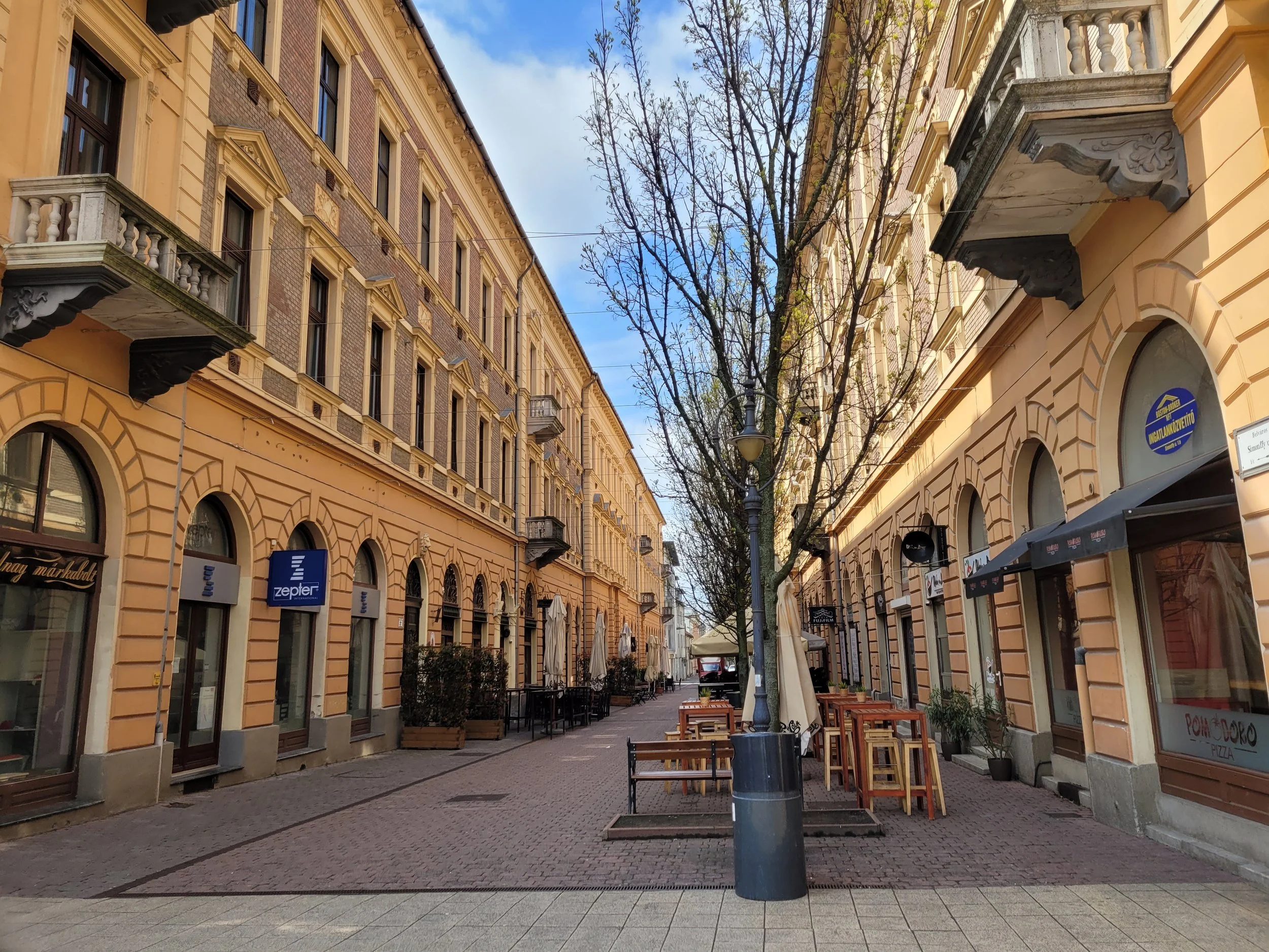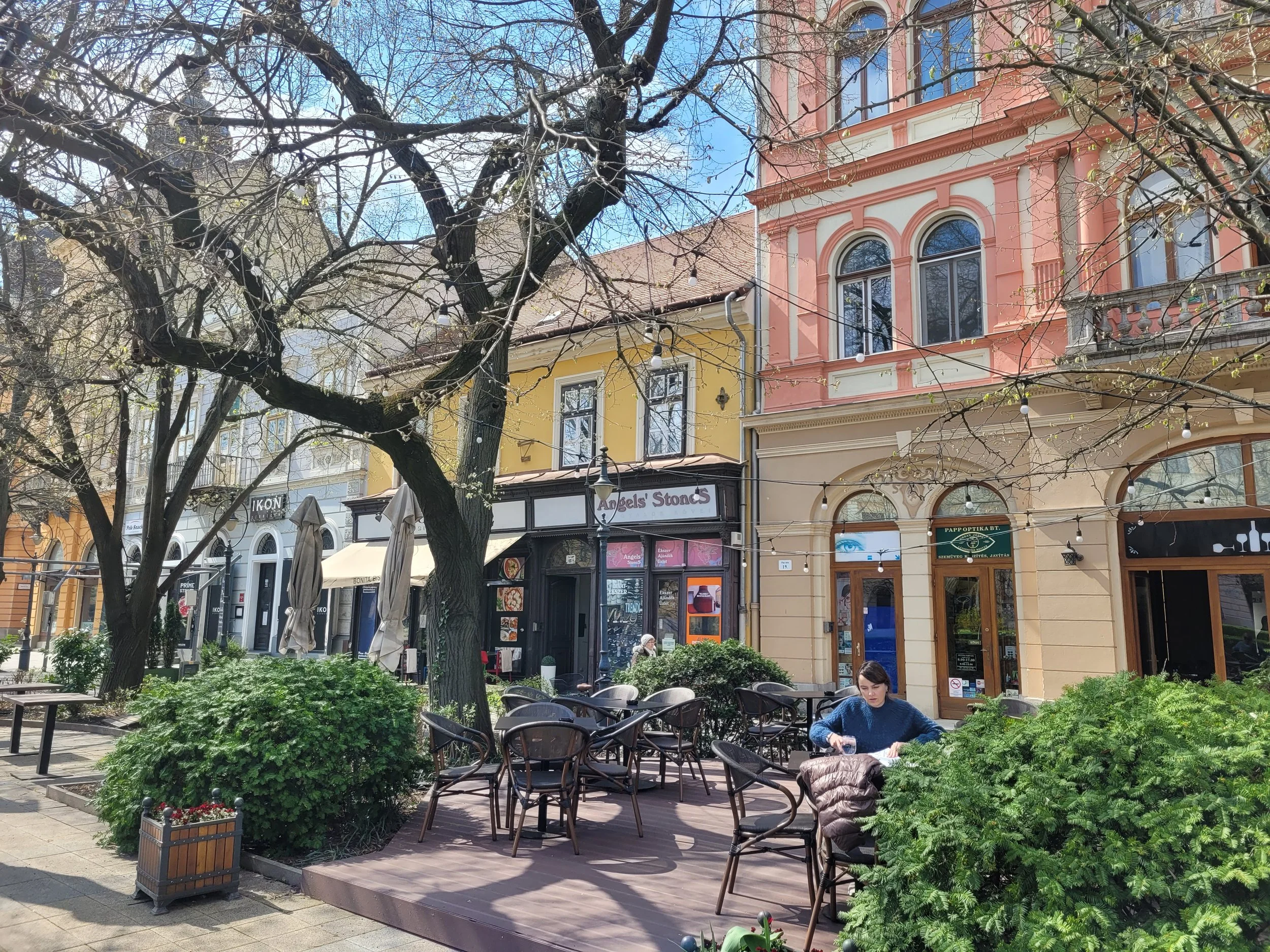 Das Zentrum von Debrecen bildet die breite Piac Utca. Mehrere Cafés laden entlang dieser Prachtstraße zum Verweilen ein.