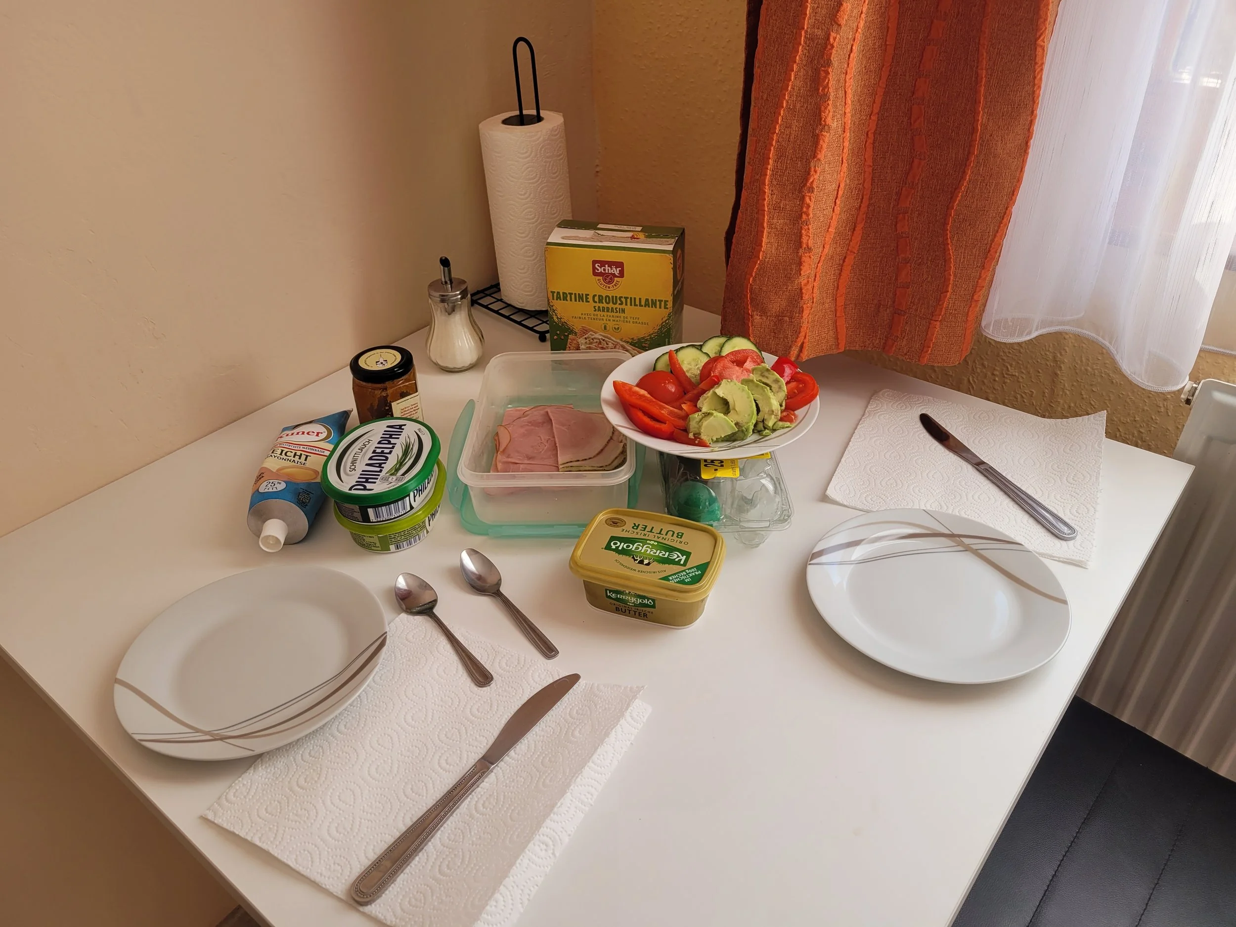 Am nächsten Morgen bereiteten wir uns ein wunderbares Frühstück in unserem Appartement vor.