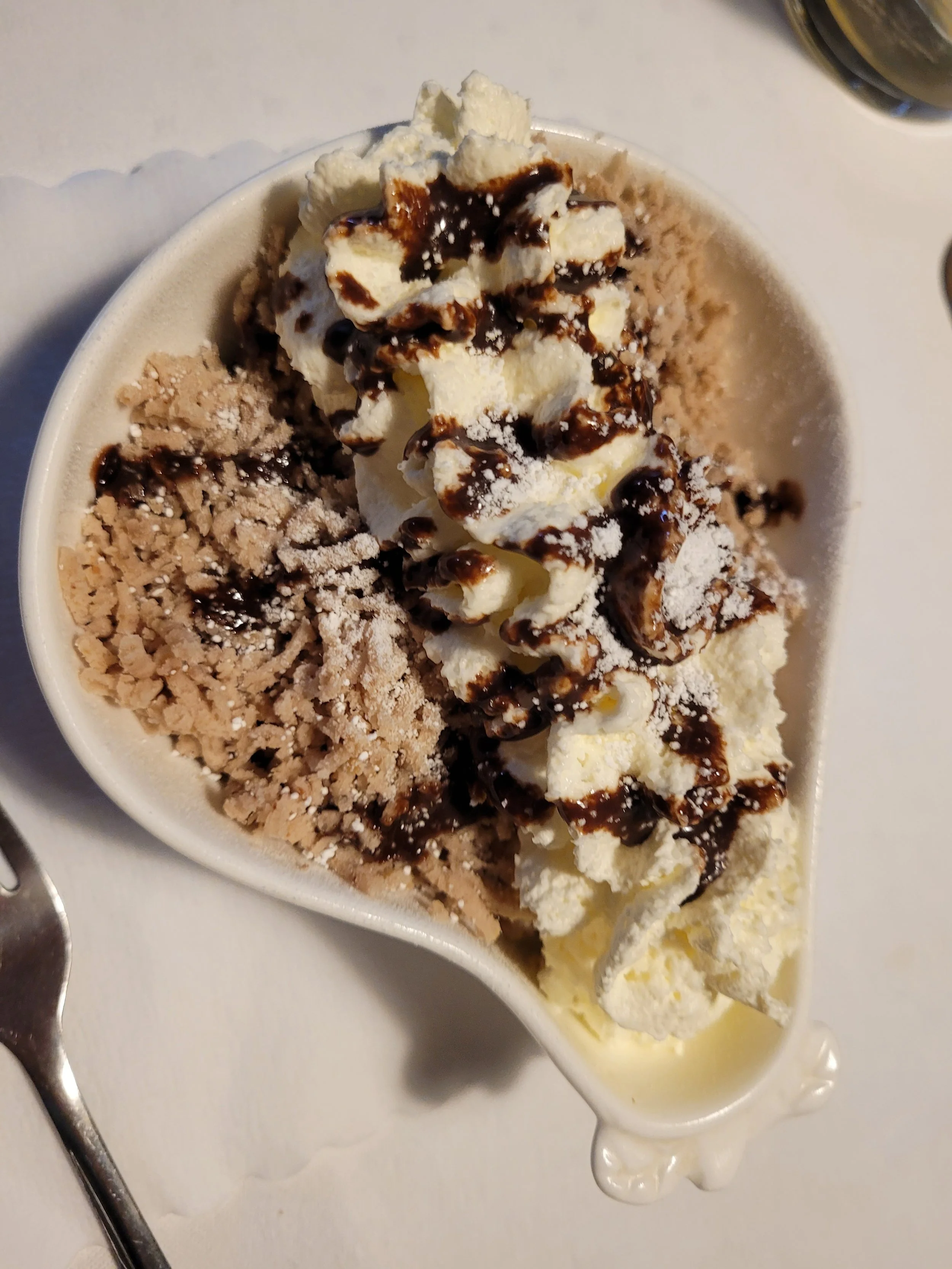 Zum Nachtisch teilten wir uns eine Portion Kastanienreis. Das Essen war wieder wunderbar.