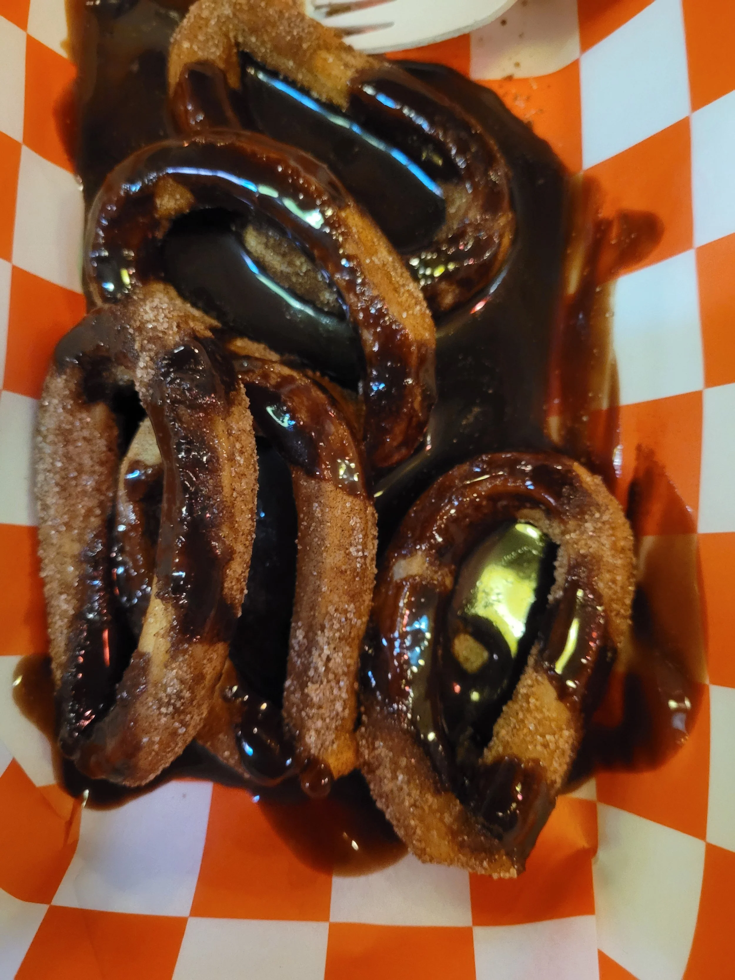 Zum Nachtisch gönnten wir uns noch Churros mit Schokolade.