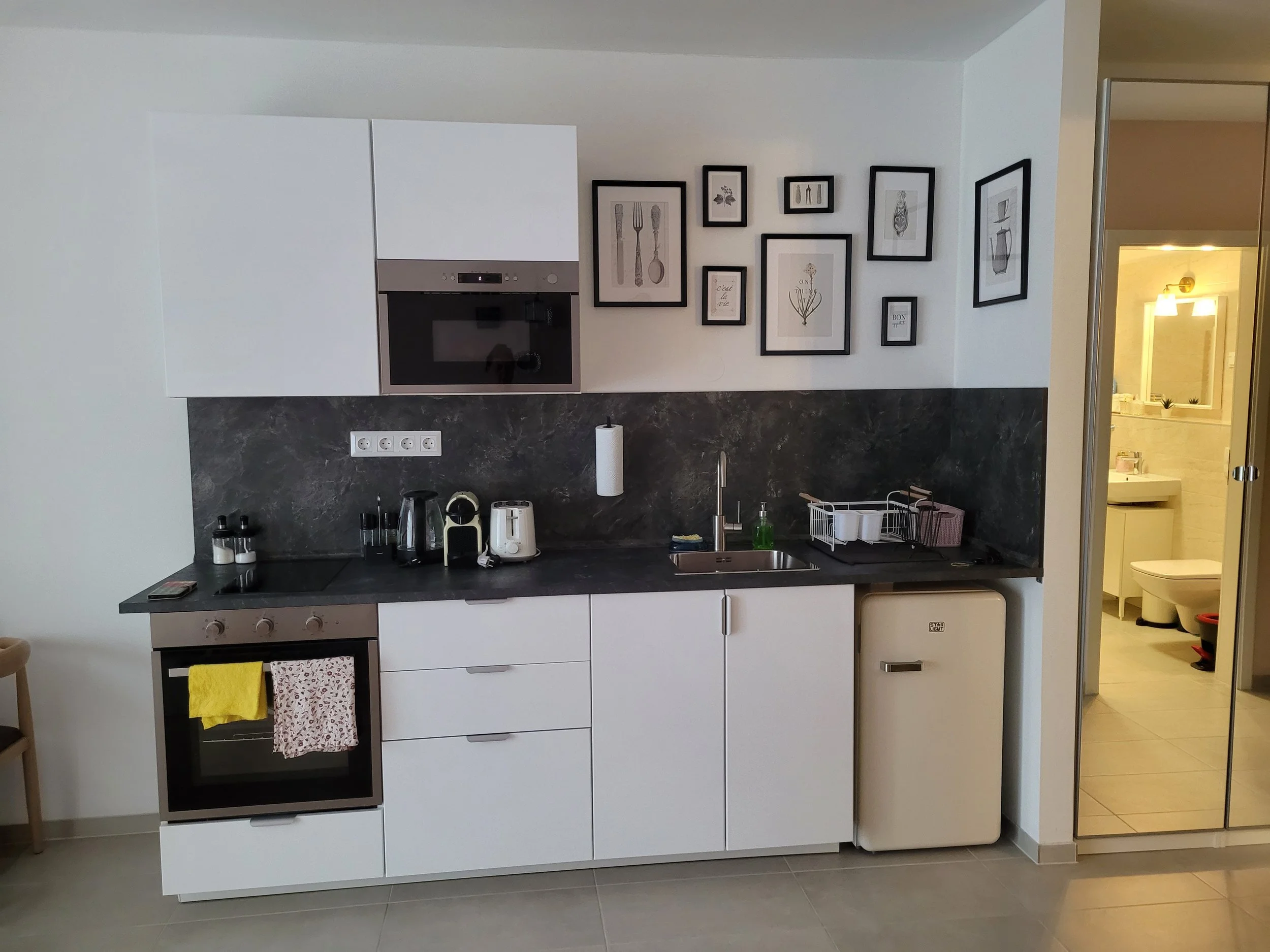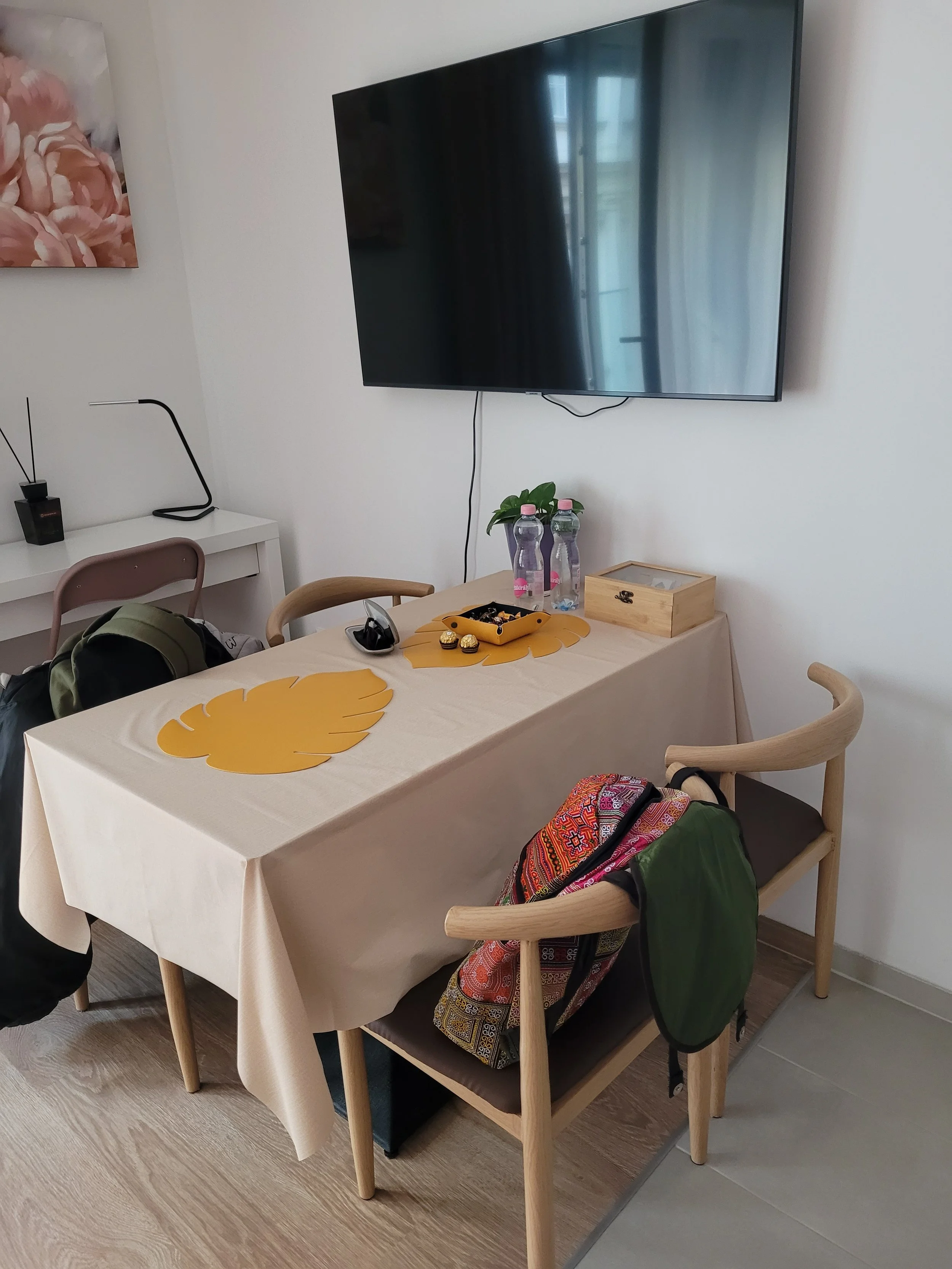 Das Appartement war wunderschön und sehr modern eingerichtet. Wir hatten ein großes Doppelbett, in dem wir sehr gut schlafen würden. In der gut ausgestatteten Küche gab es sogar eine Kaffeemaschine.
